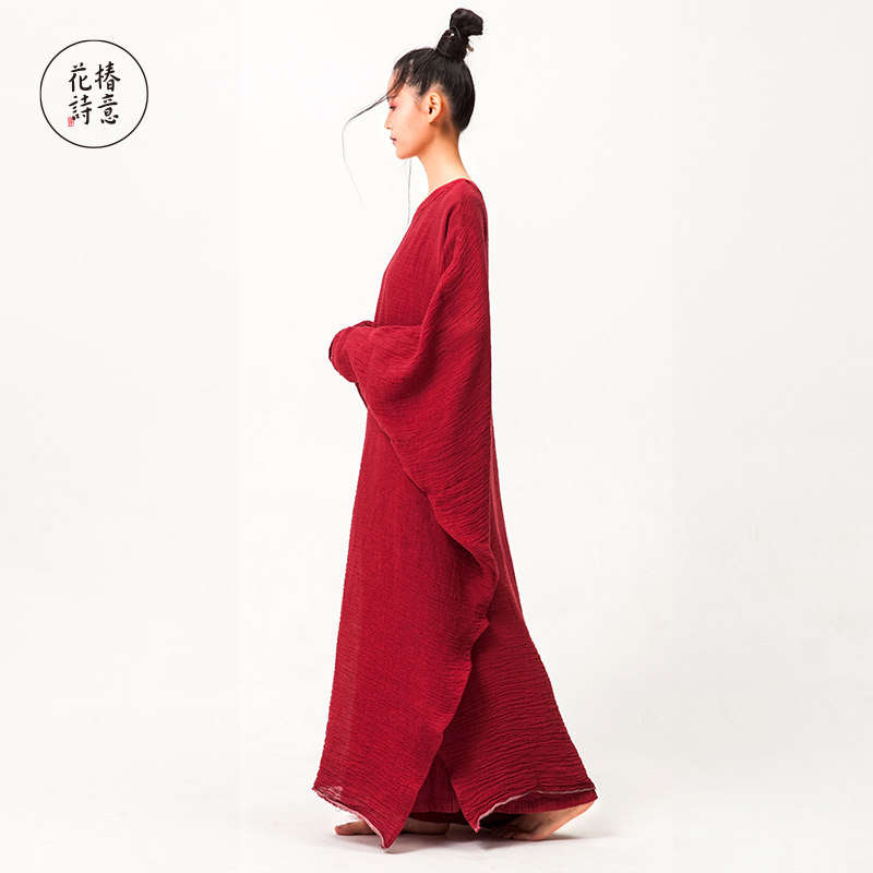 禅舞服女中国风连衣裙开叉夏季新款原创宽松文艺茶服亚麻袍子
