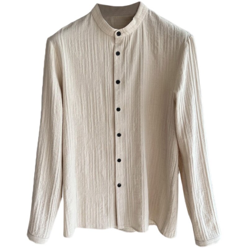 清爽文艺,质感提花!新中式国潮个性设计感小立领长袖衬衫男衬衣