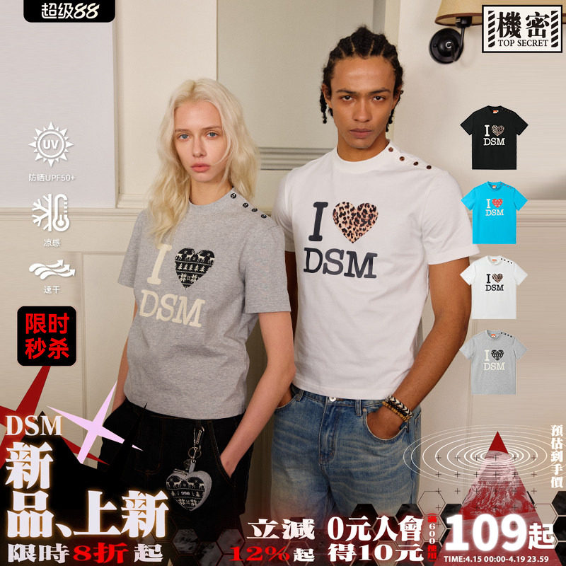 --------------------- DONSMOKE豹纹费尔岛爱心印花速干短袖T恤正肩纽扣设计感防晒上衣 【原售价】335元 【现售价】108.88元 【推荐理由】