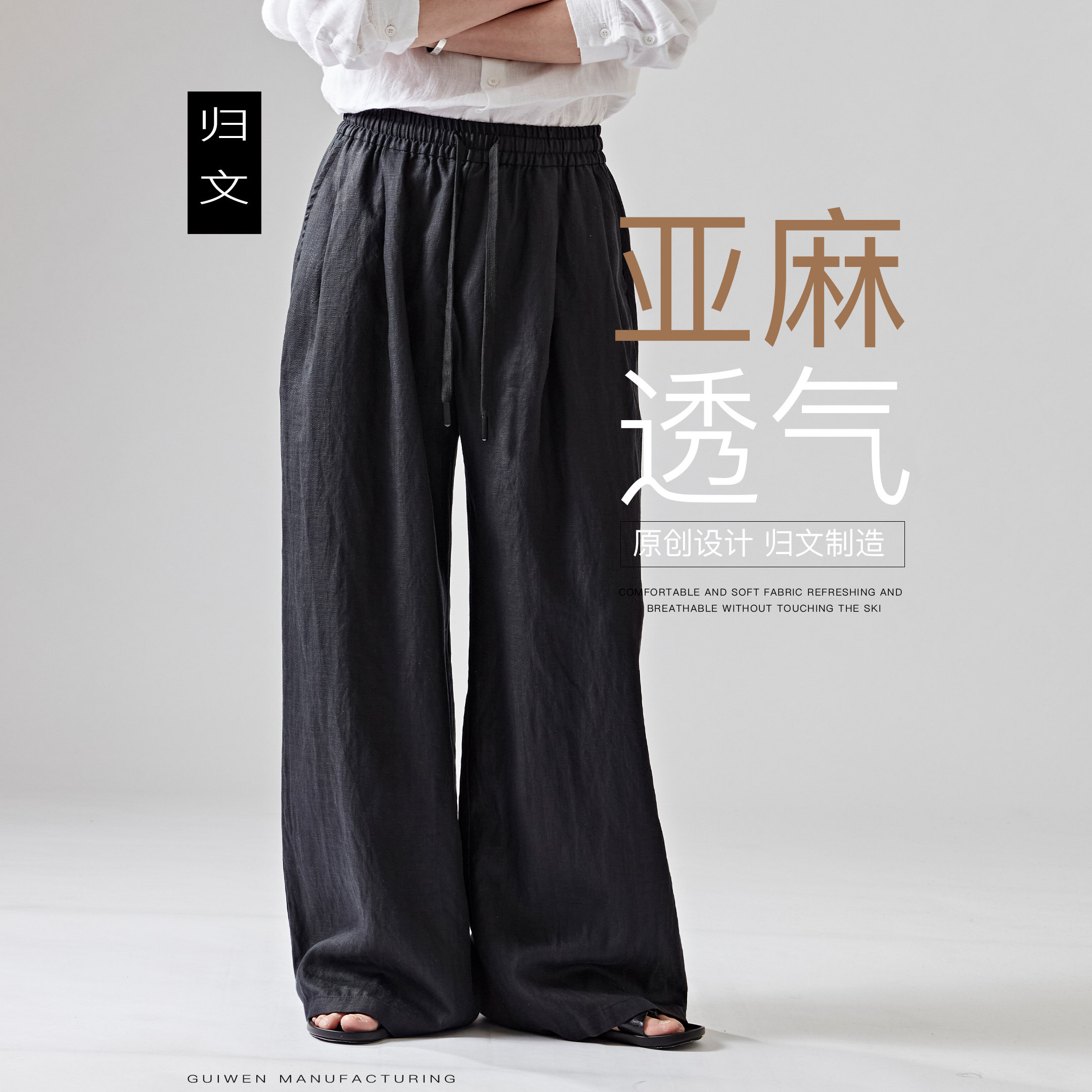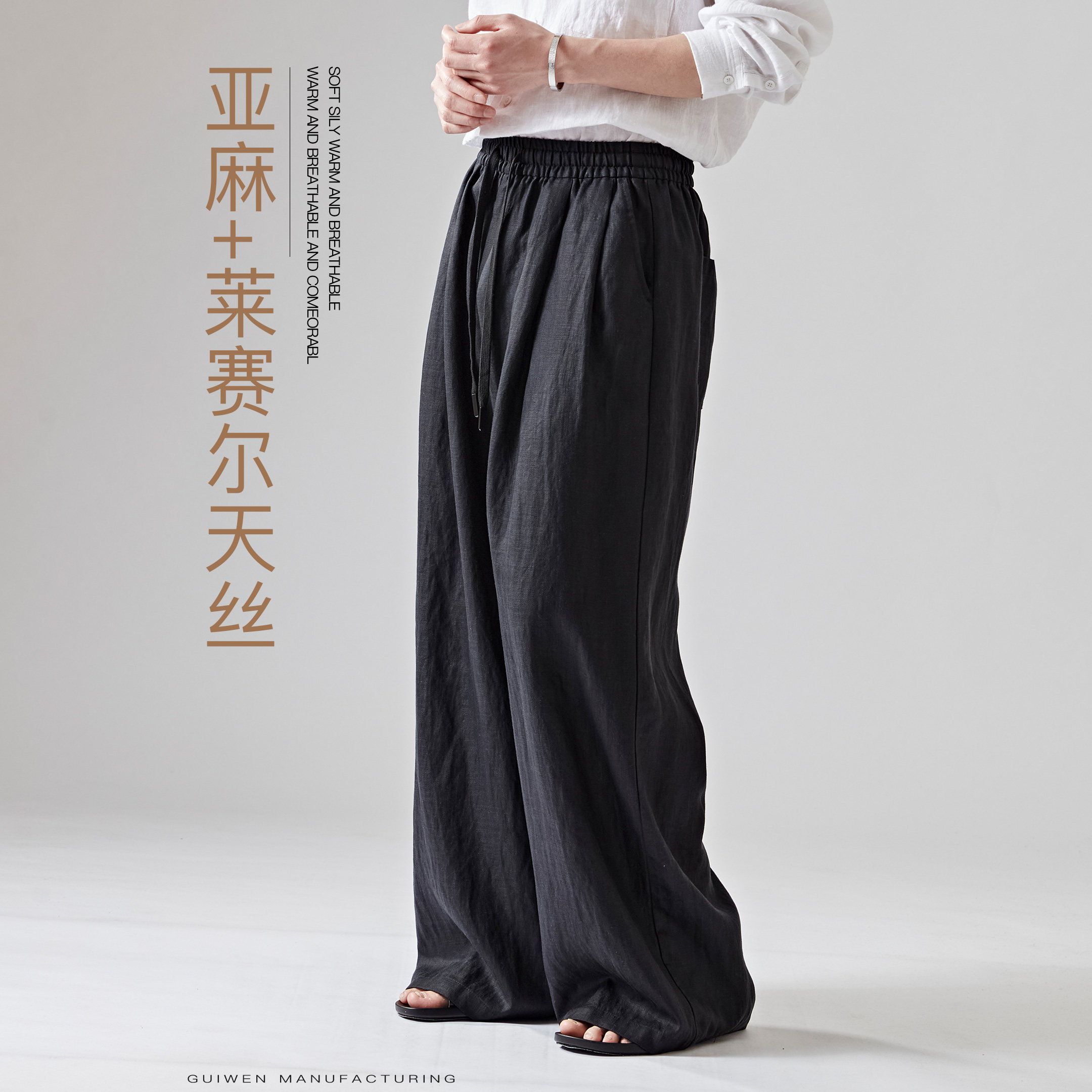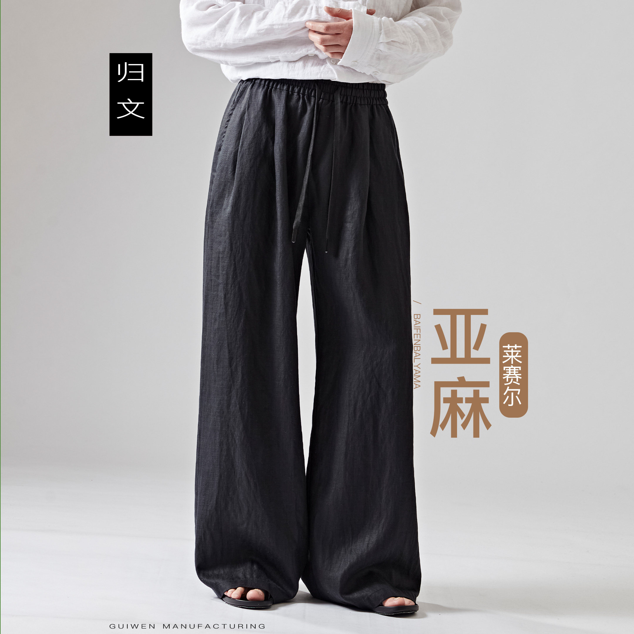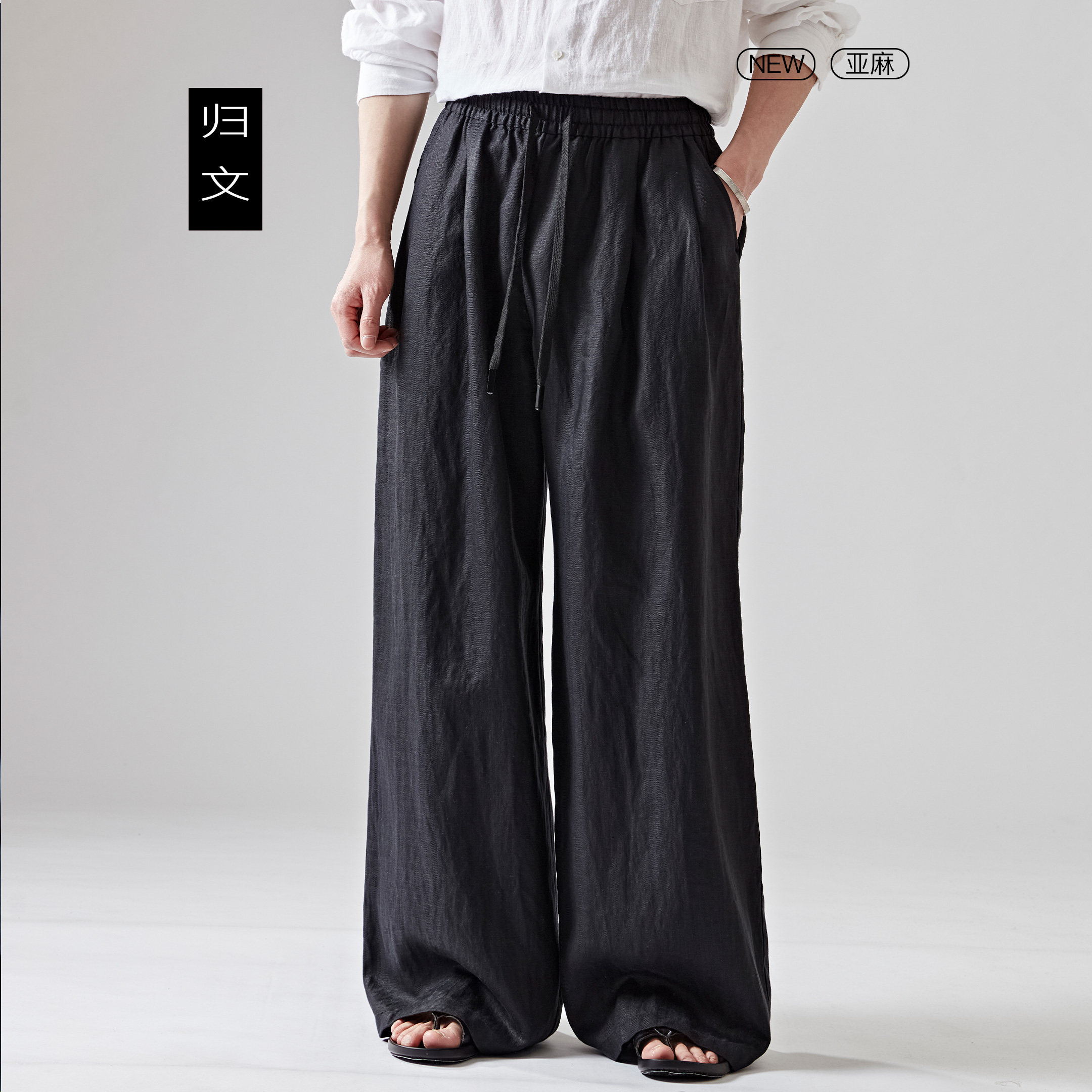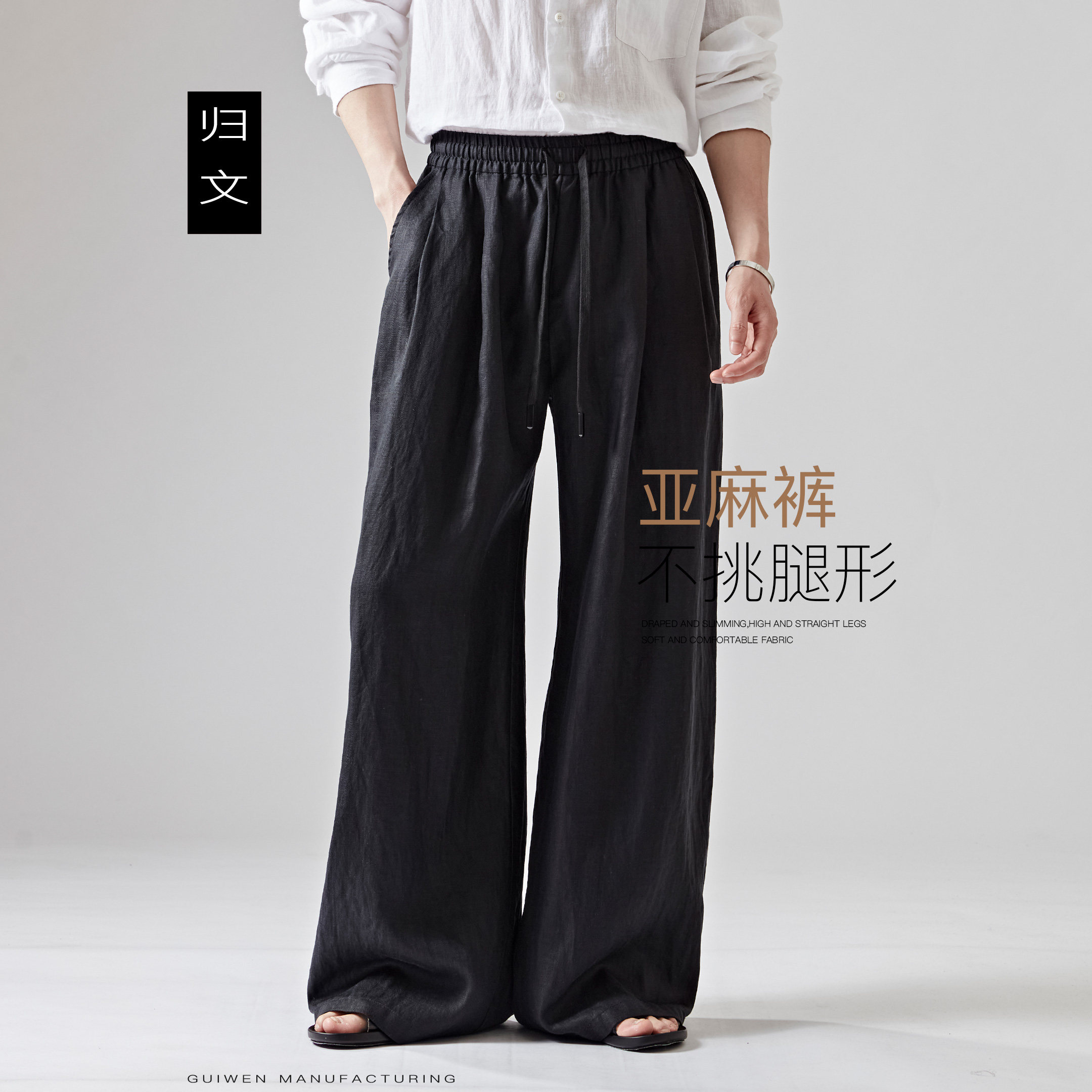 --------------------- 亚麻阔腿裤男黑色松弛感垂坠显瘦透气休闲莱赛尔长裤宽松大码男裤 【原售价】232元 【现售价】204元 【推荐理由】