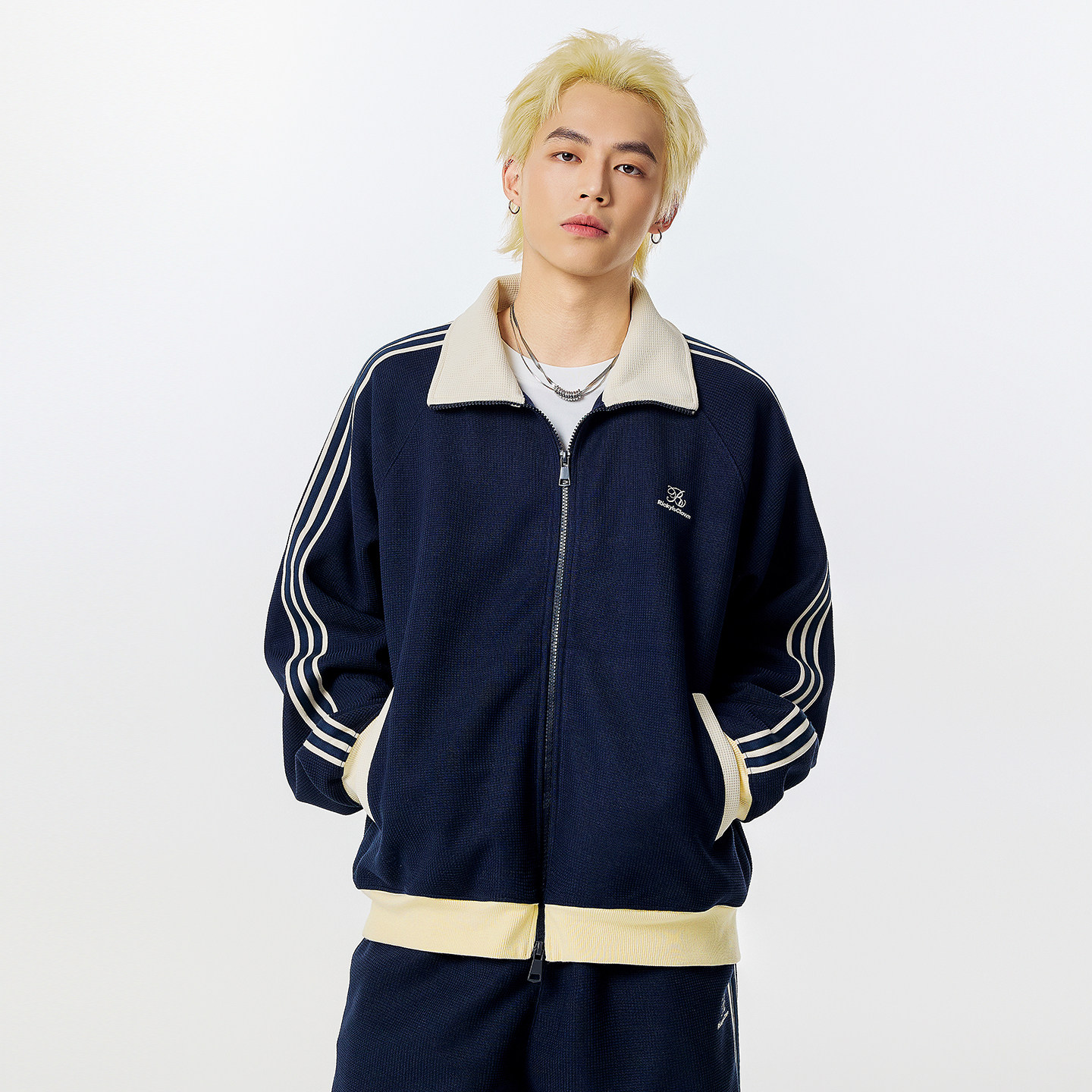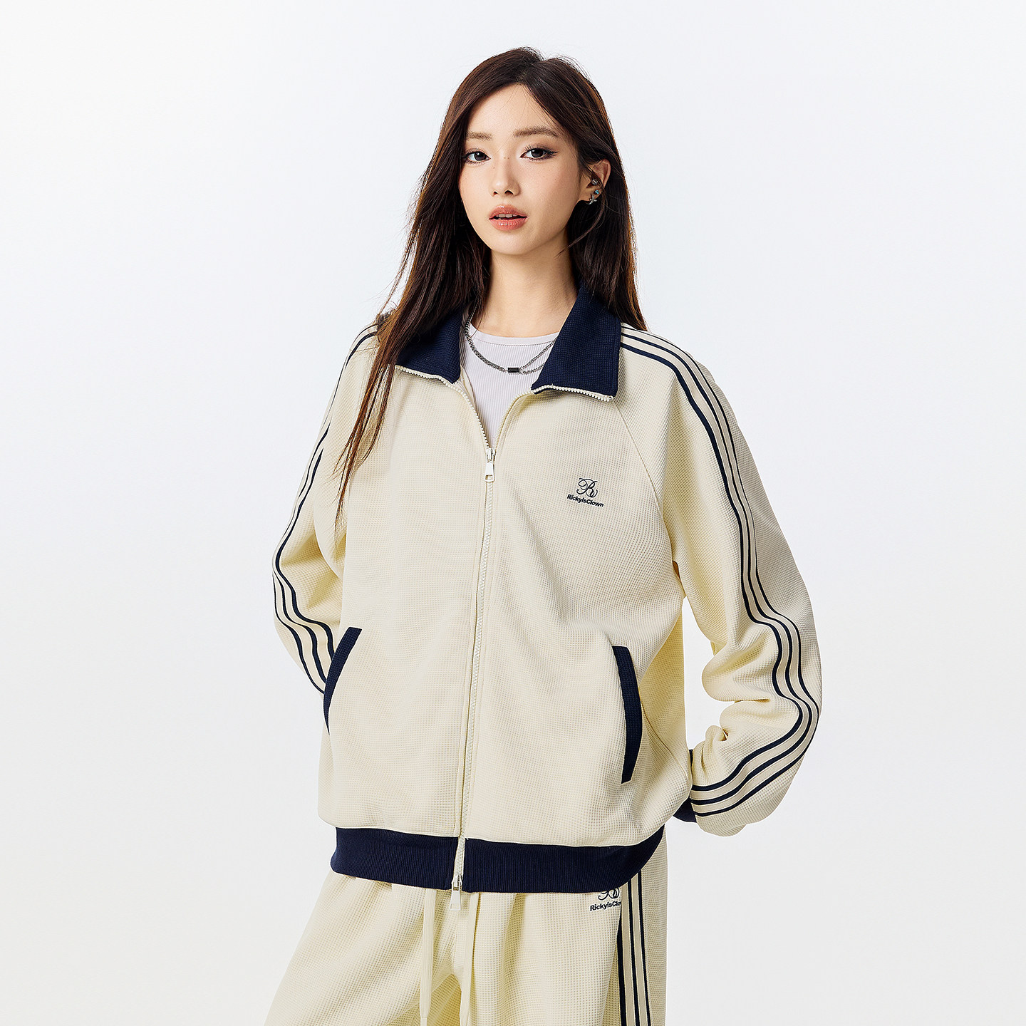 RIC 撞色华夫格外套男款2025新款秋季运动美式复古情侣潮牌夹克女
