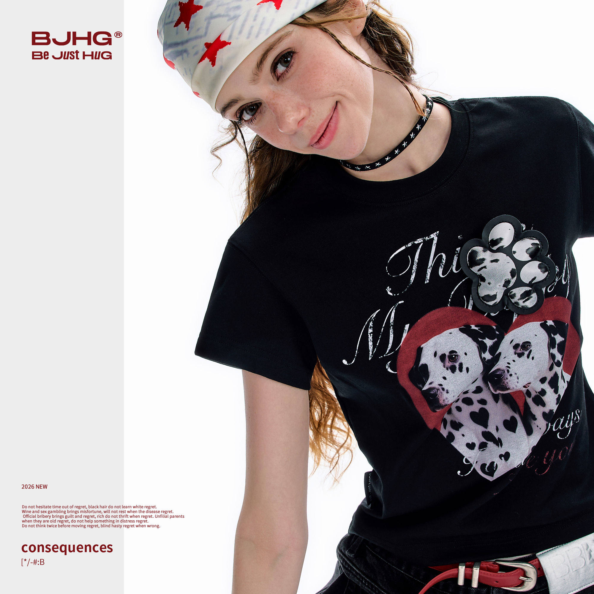 --------------------- BJHG不计后果 短袖t恤女2026新款男款夏季速干斑点狗印花修身上衣 --------------------- --------------------- 【原价】179元 【券后价】129元