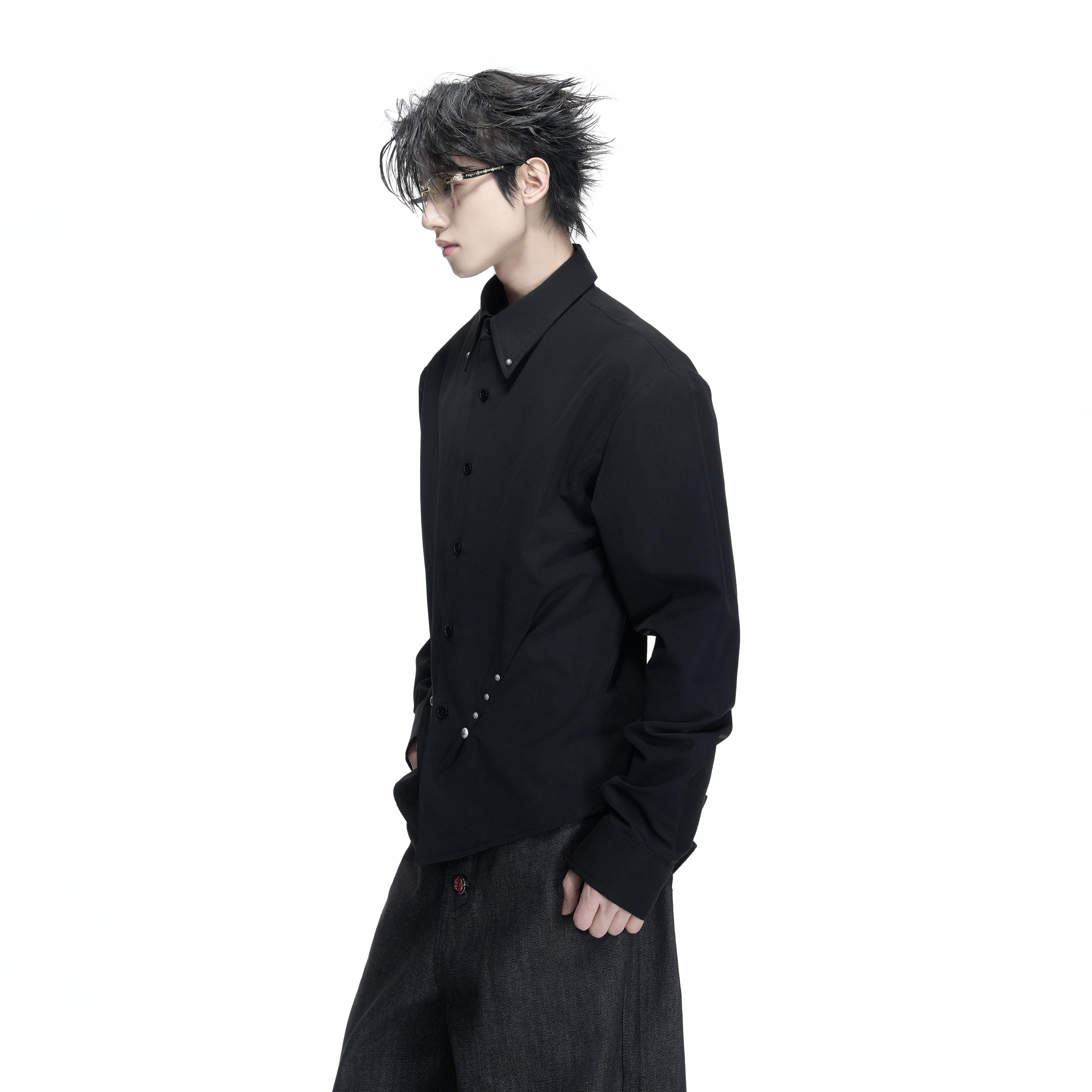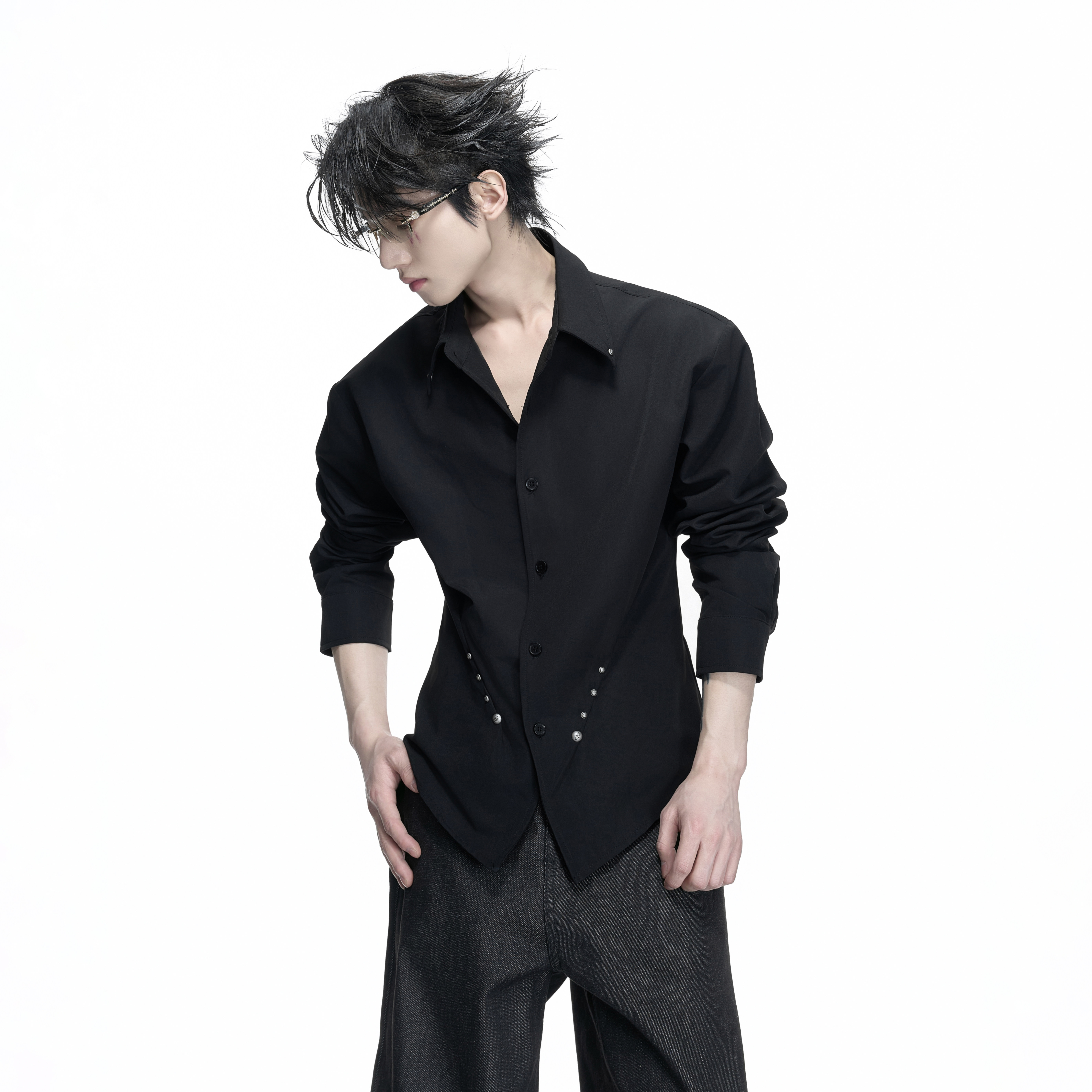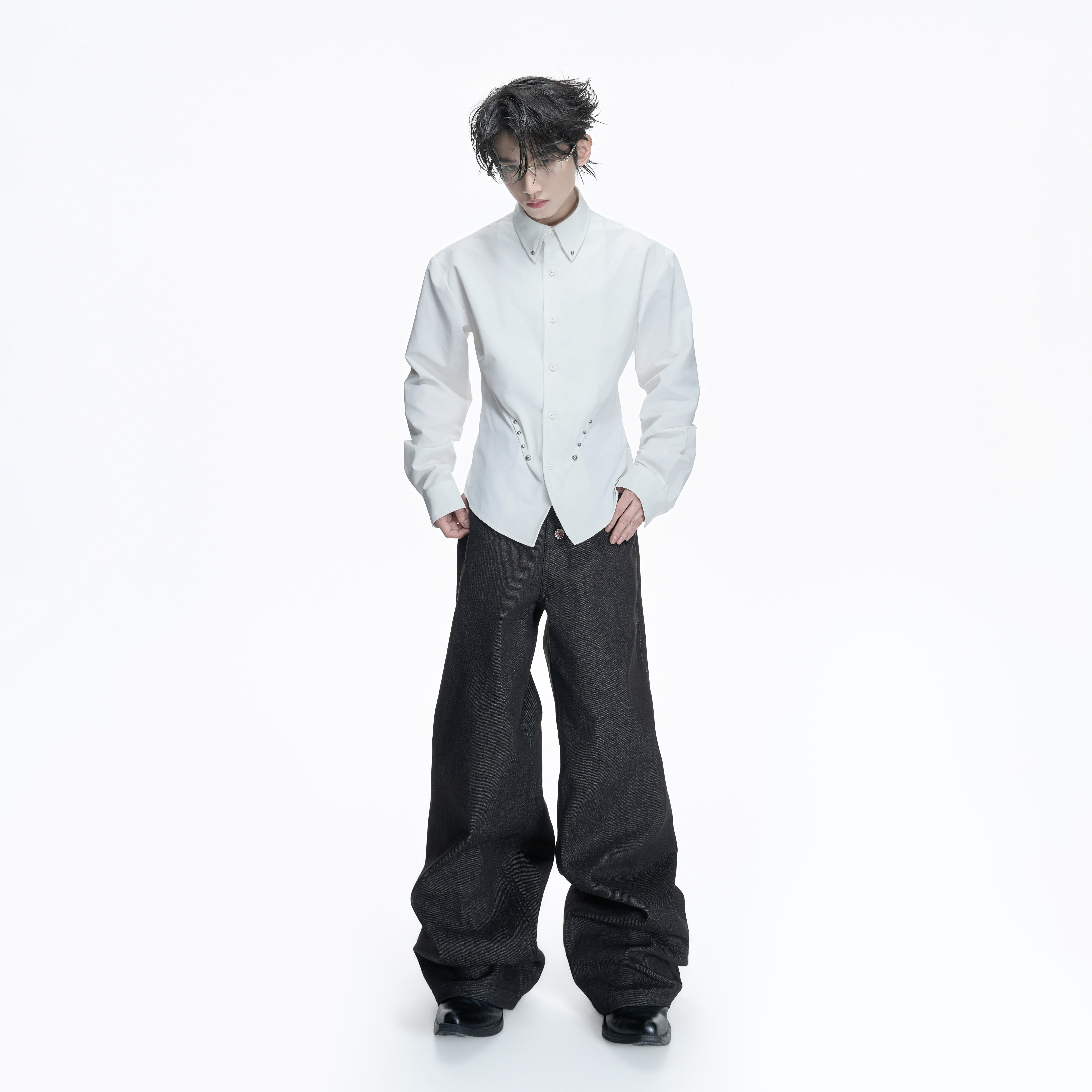ArguE CulturE褶痕*重磅铆钉收腰正肩衬衫宫廷袖优雅垂感抗皱衬衣