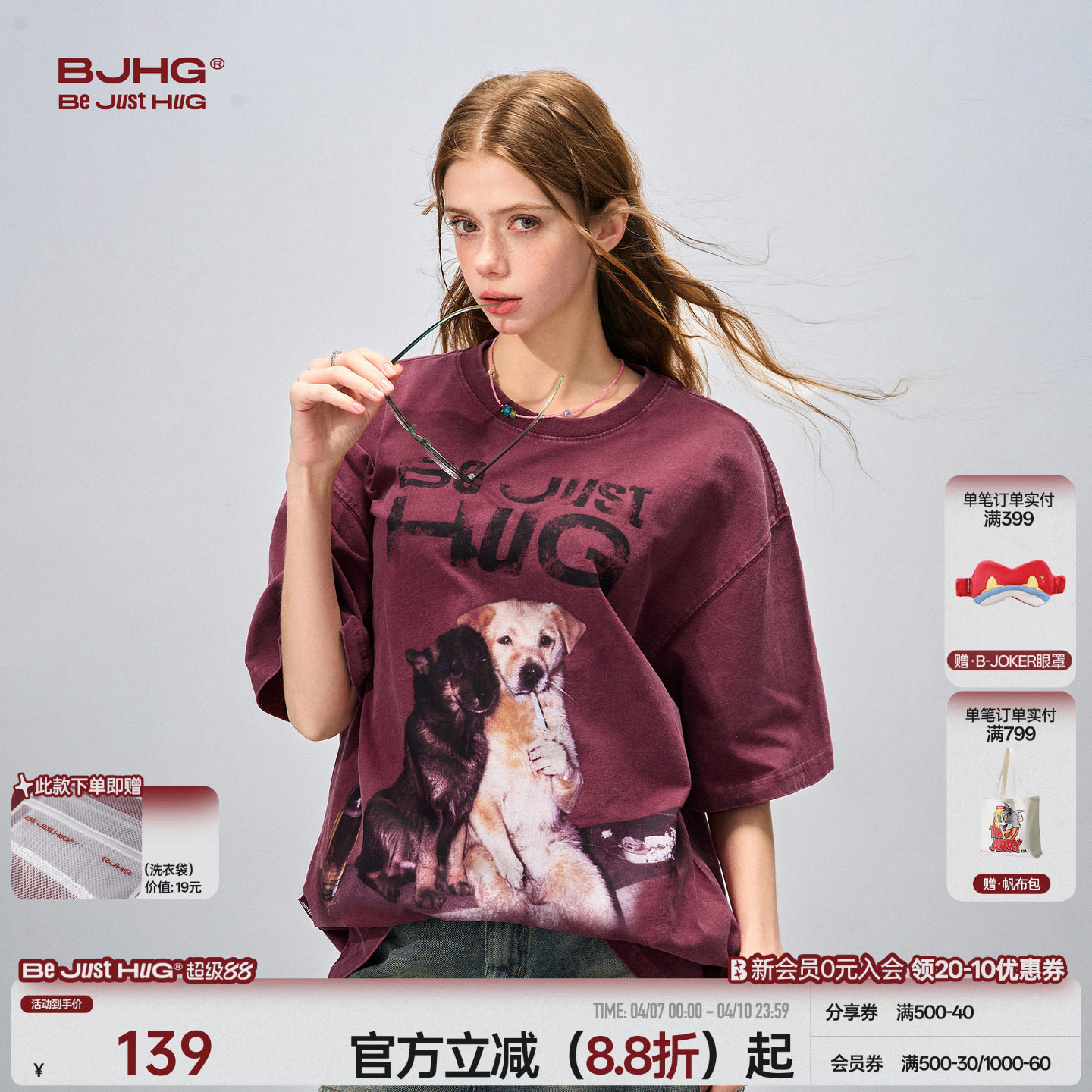 --------------------- BJHG不计后果小狗T恤短袖男款夏季美式水洗做旧纯棉情侣款短袖女 【原售价】159元 【现售价】139元 【推荐理由】