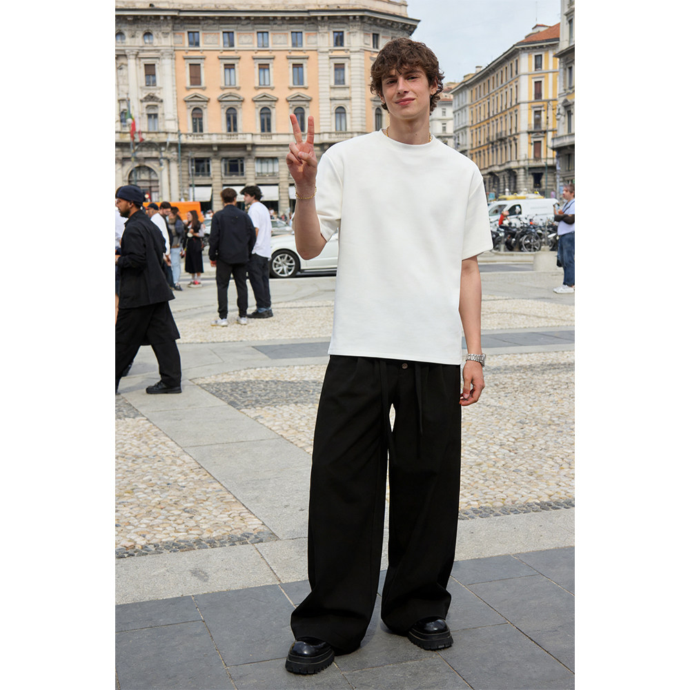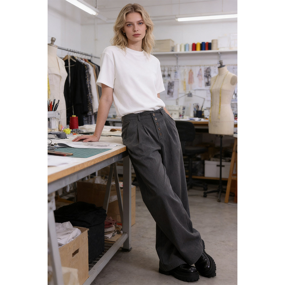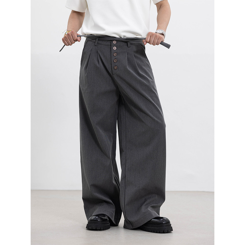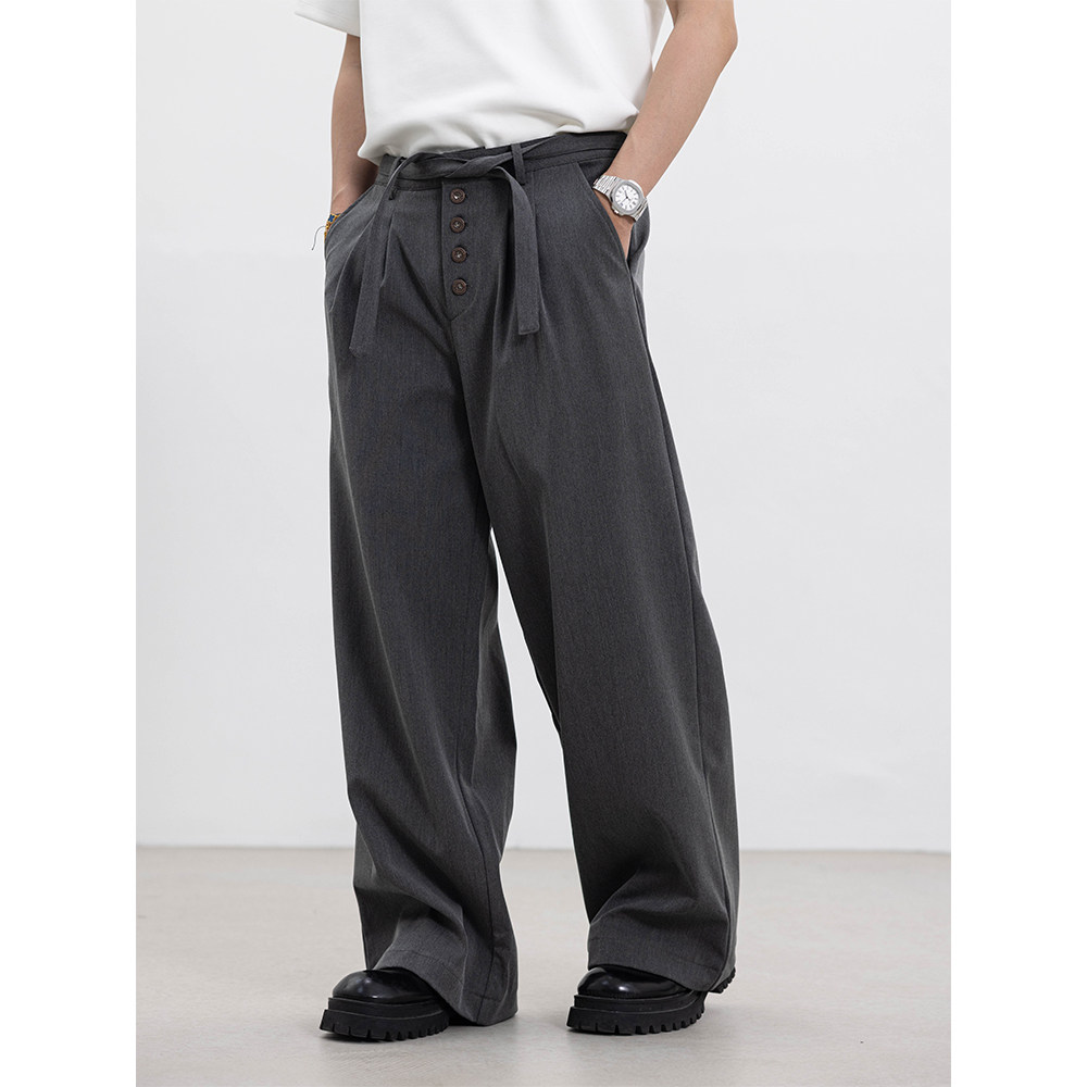 S123 剑道双褶A字西裤通勤口粮TR抗皱直筒宽松可调节腰带/五联扣