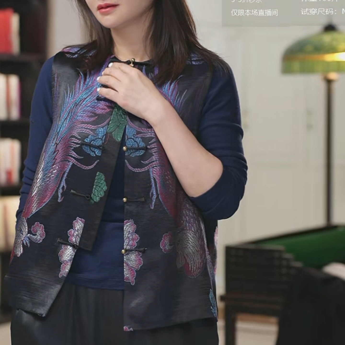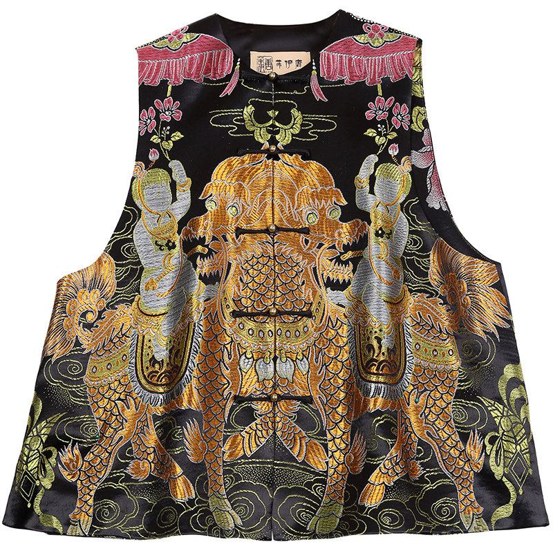 --------------------- 菲伊唐中式国潮复古改良真丝老段对襟百搭圆领宽松盘扣马夹女上衣 【原售价】699元 【现售价】615元 【推荐理由】