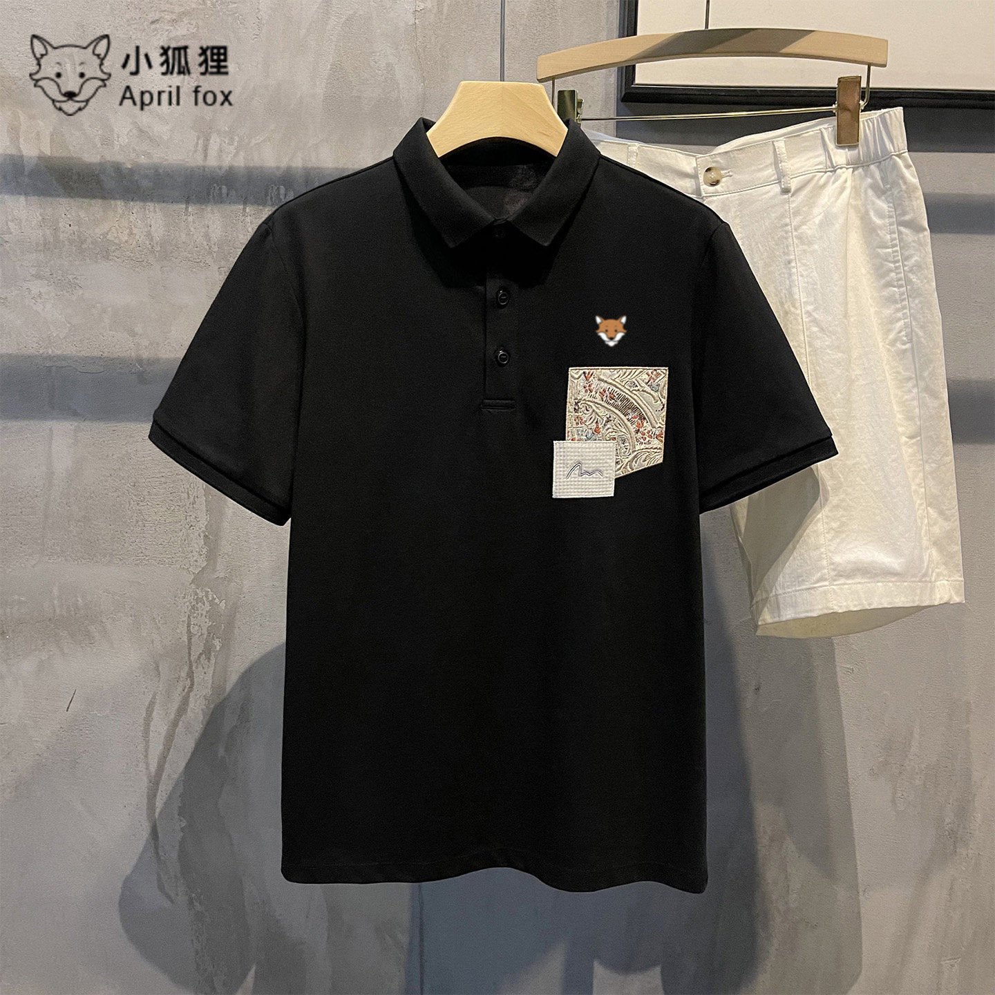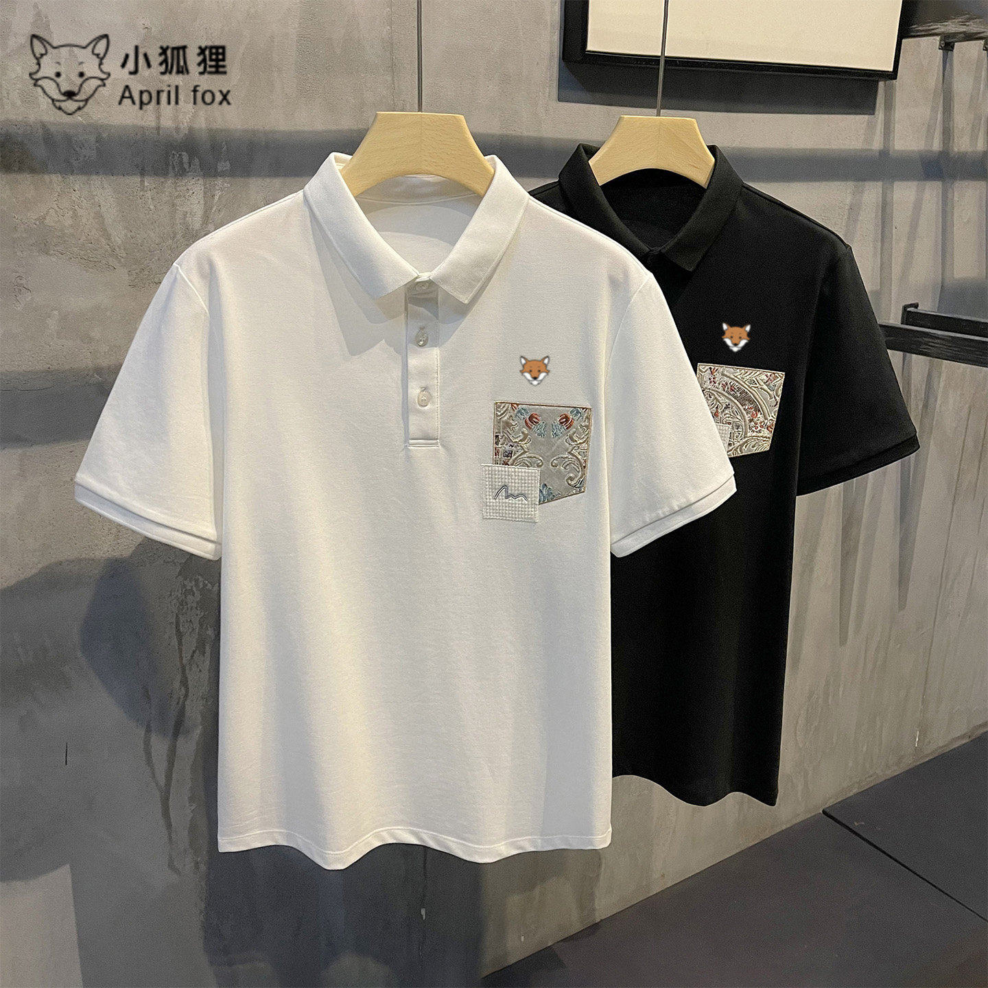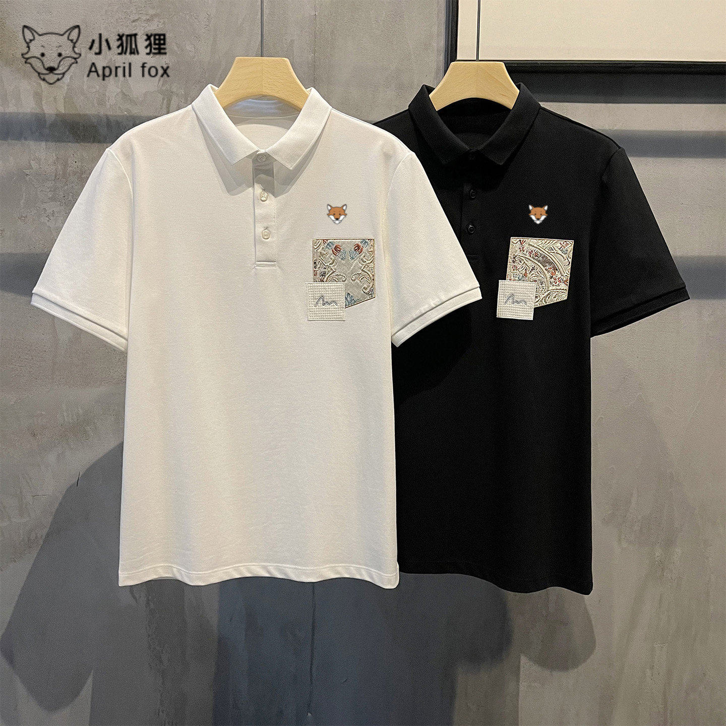 英国小狐狸中国风国潮贴布刺绣POLO衫简约翻领短袖T恤透气上衣夏