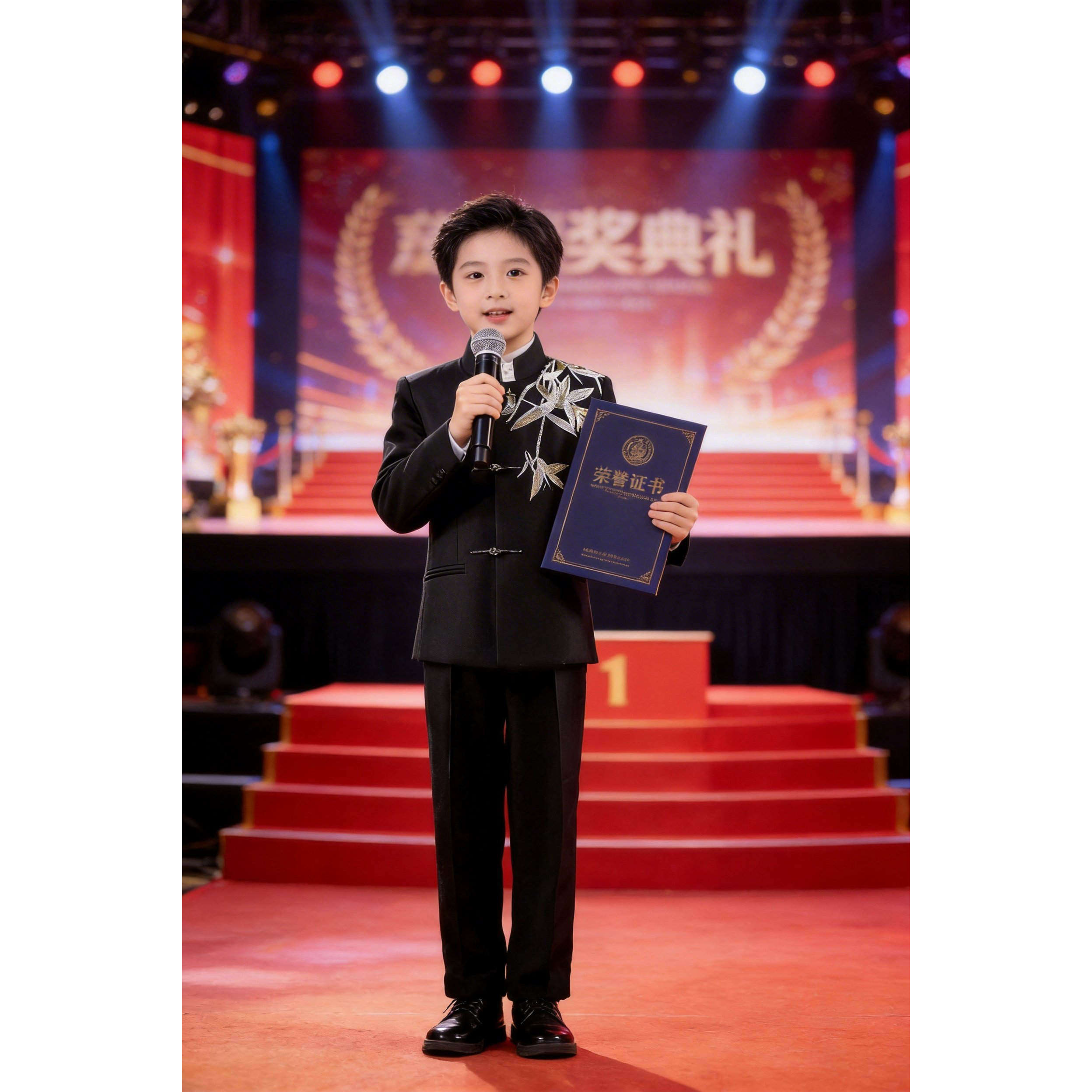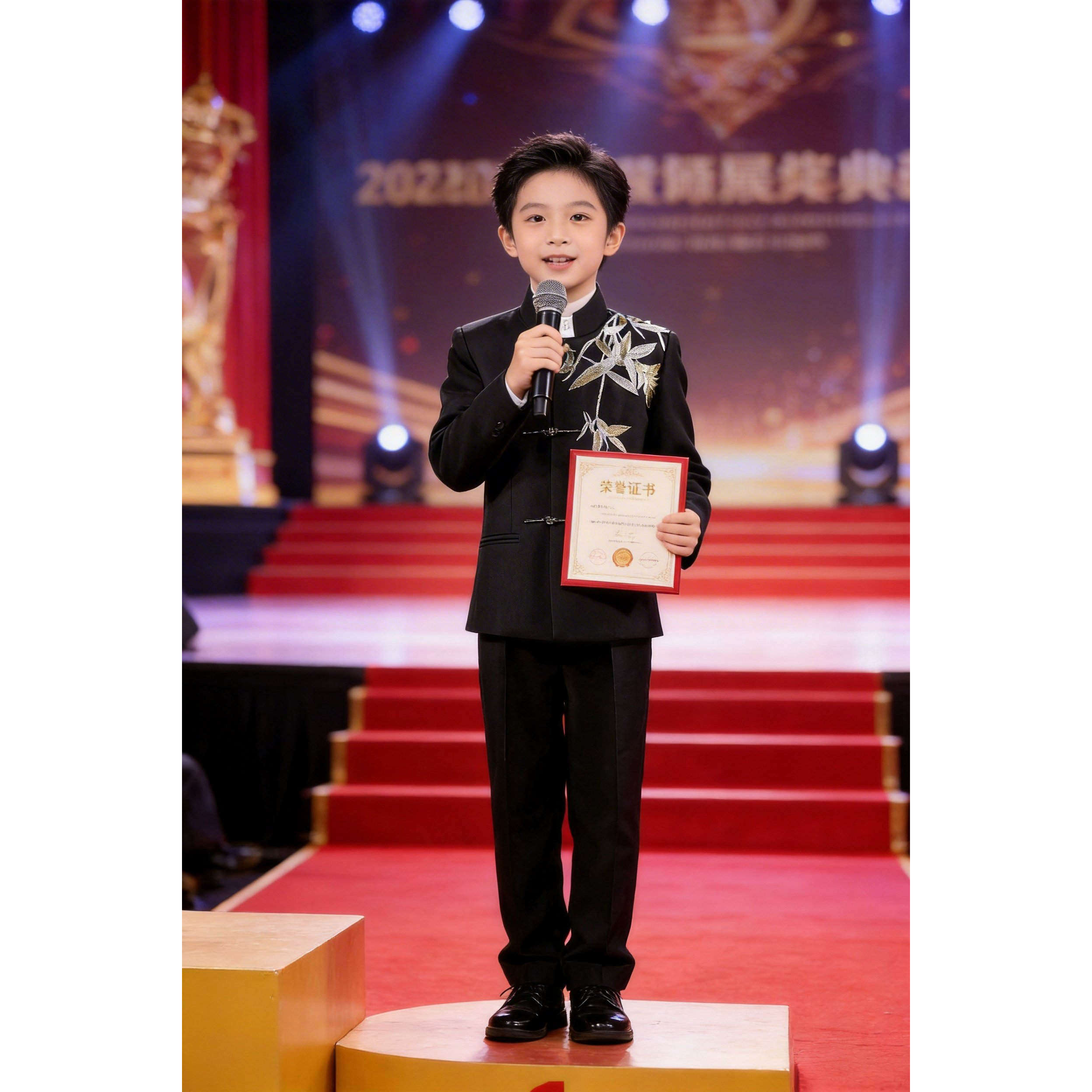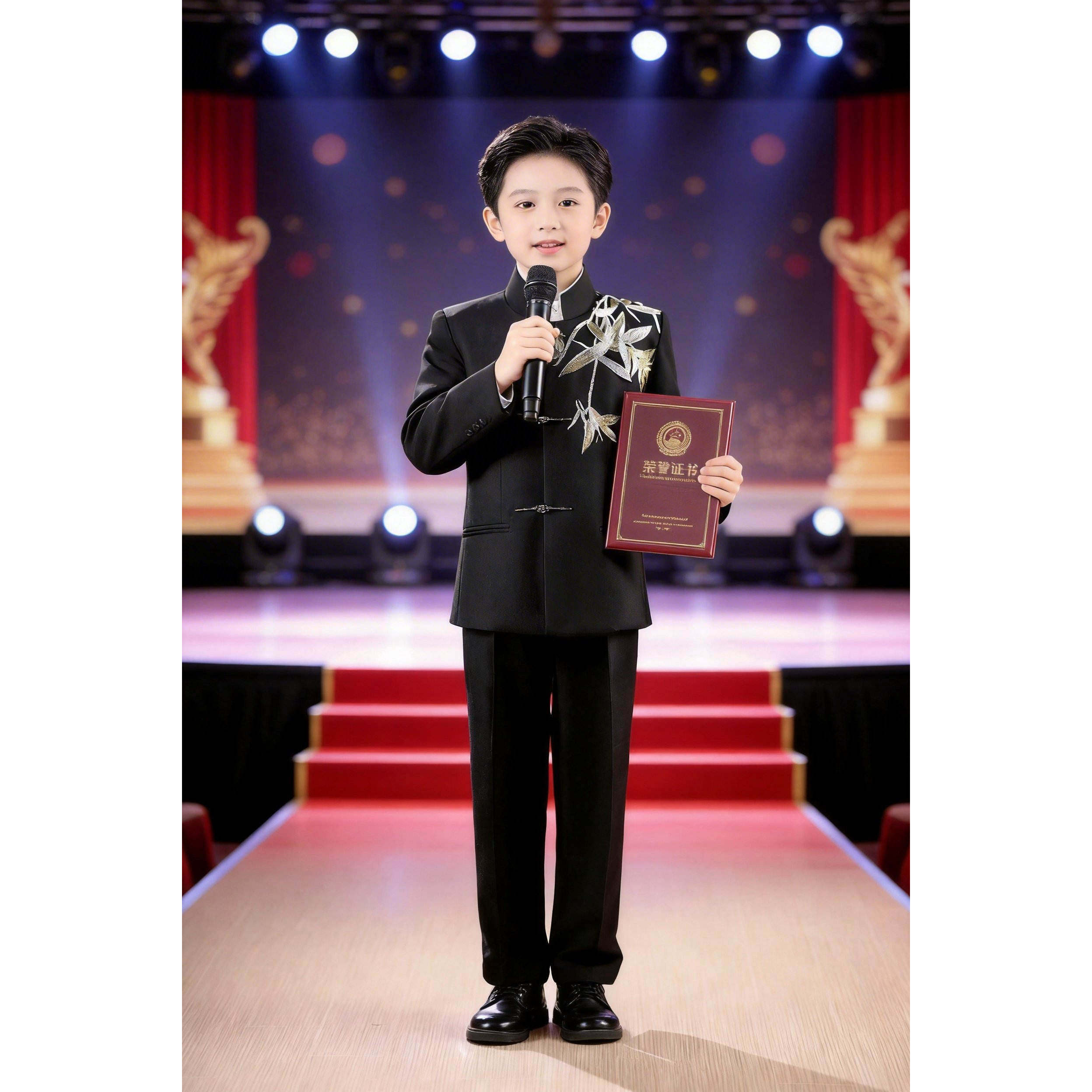 --------------------- 儿童中山装套装男童主持人礼服中式国风竹叶刺绣诗朗诵演出服国潮 【原售价】318元 【现售价】244元 【推荐理由】