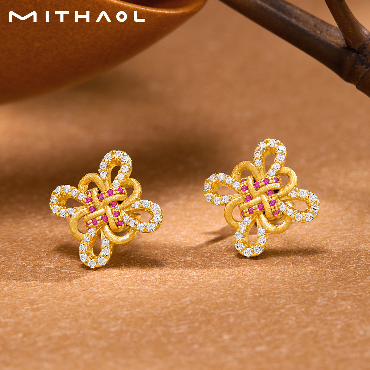 MITHAOL金结繁花耳钉轻奢高级感气质大气新中式中国结银耳饰女款