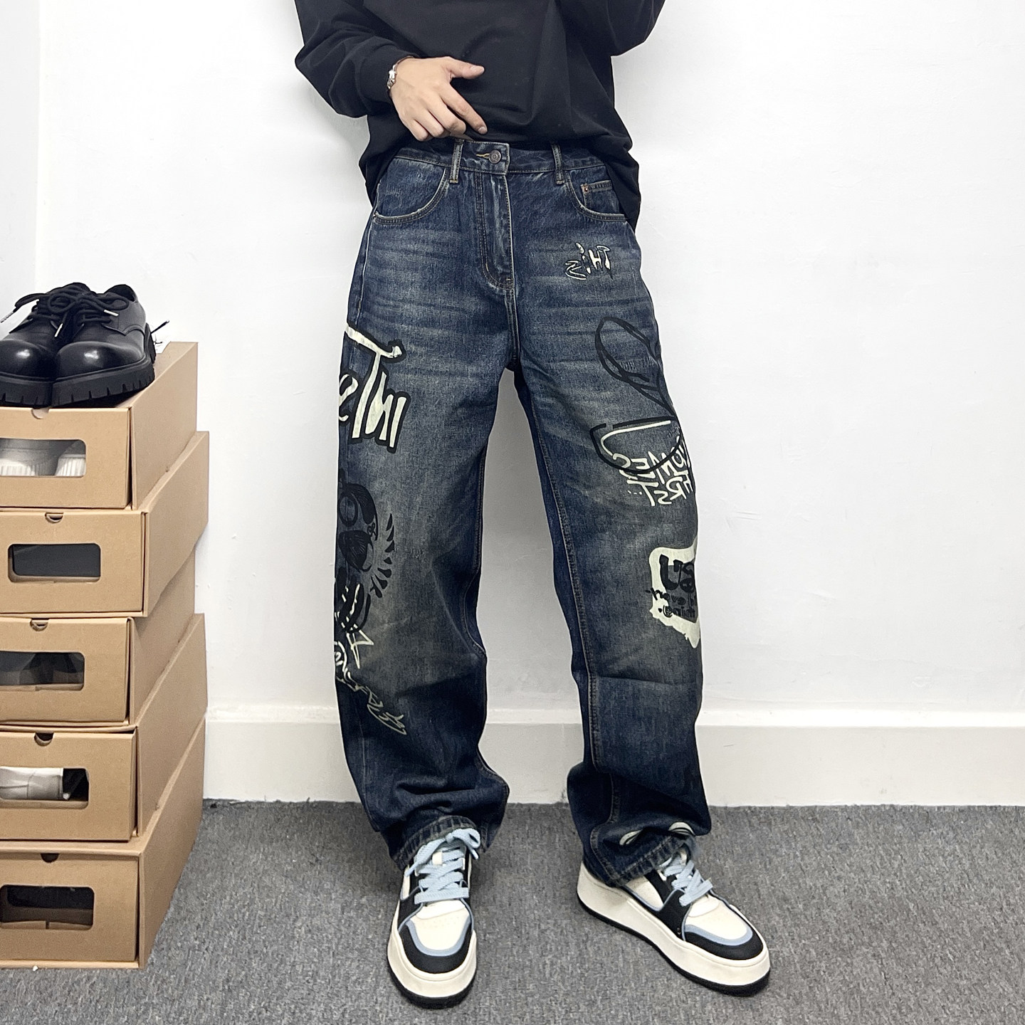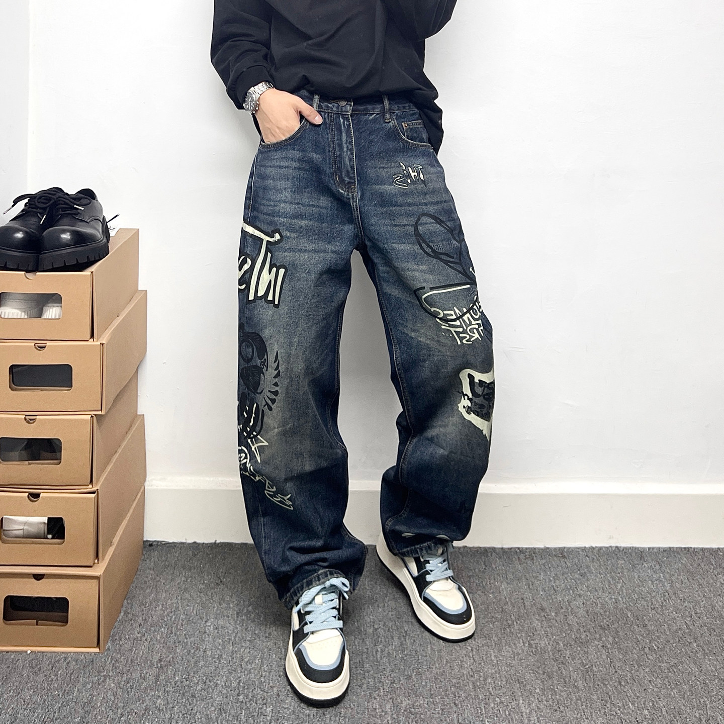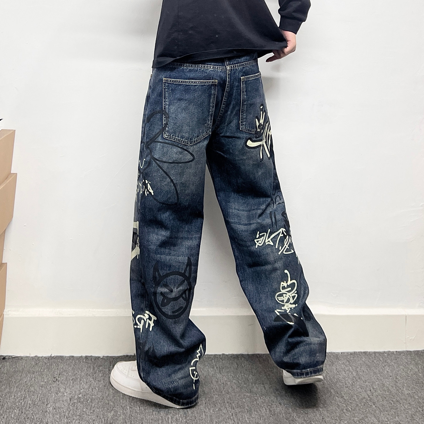 --------------------- 潮牌卡通涂鸦牛仔裤男复古做旧宽松直筒裤个性印花街头风痞帅长裤 【原售价】203元 【现售价】178元 【推荐理由】