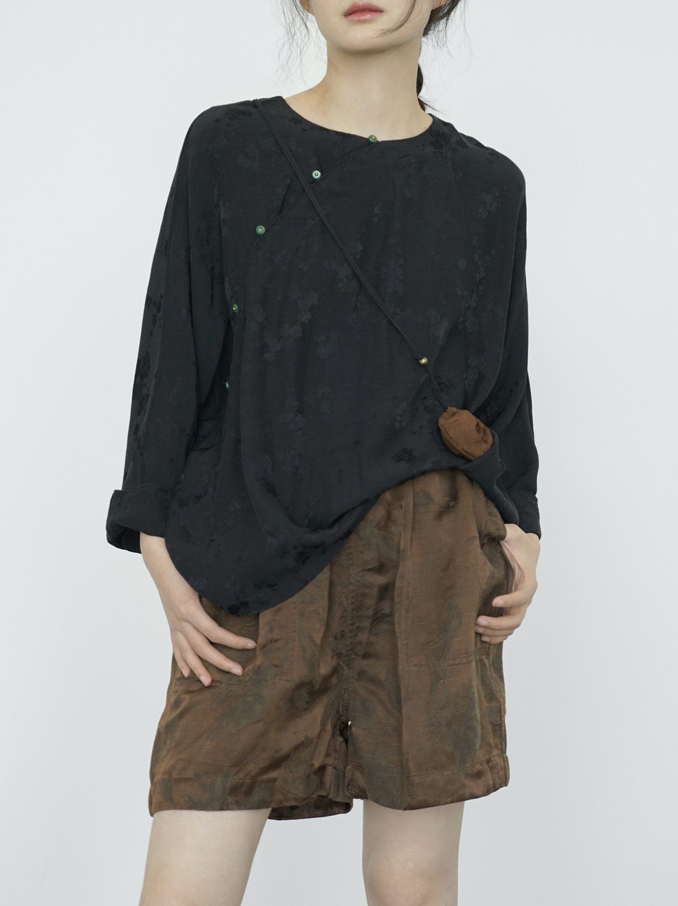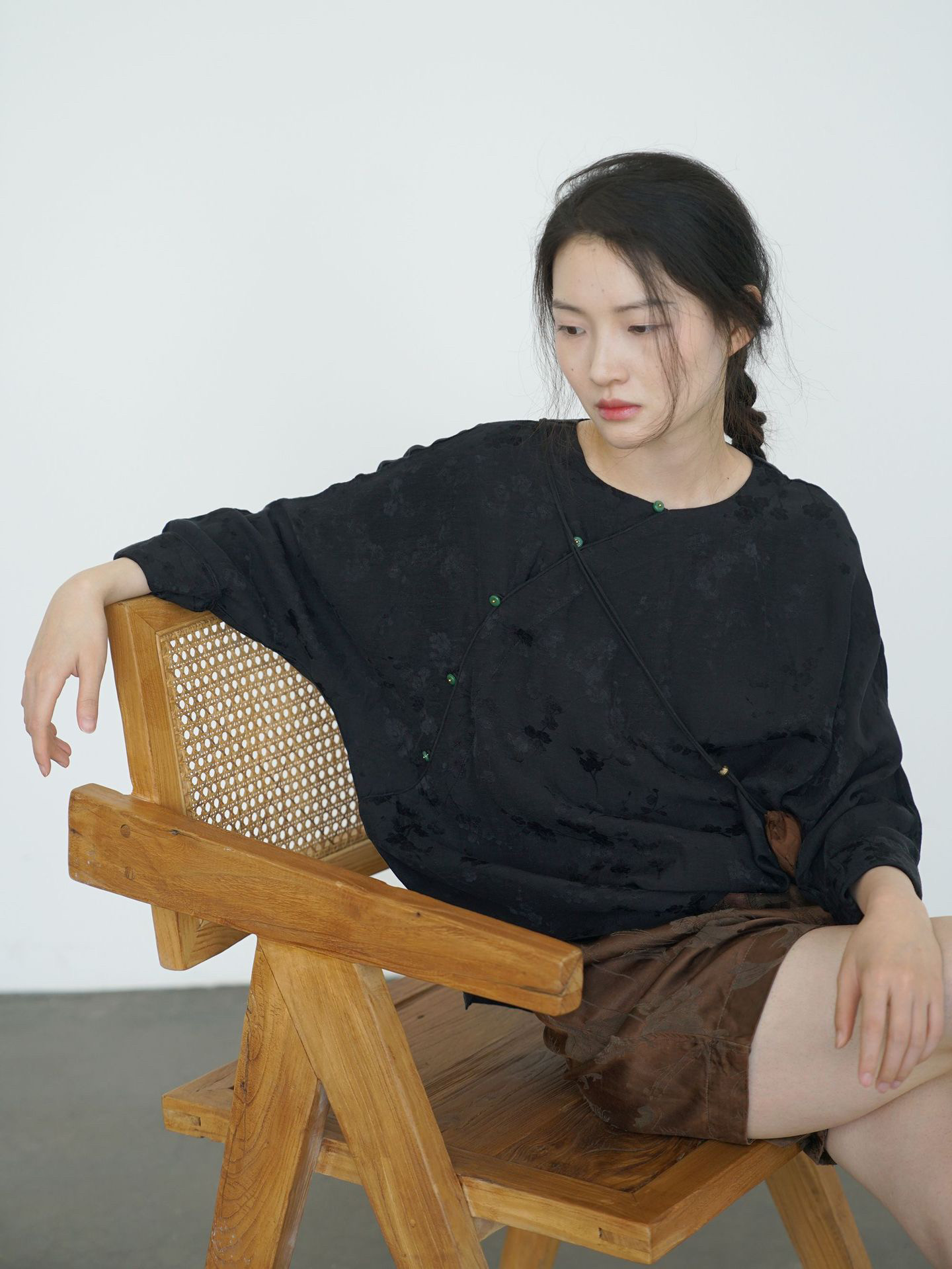 新中式圆领提花上衣蝙蝠袖宽松百搭显瘦衬衫国潮个性文艺茶服