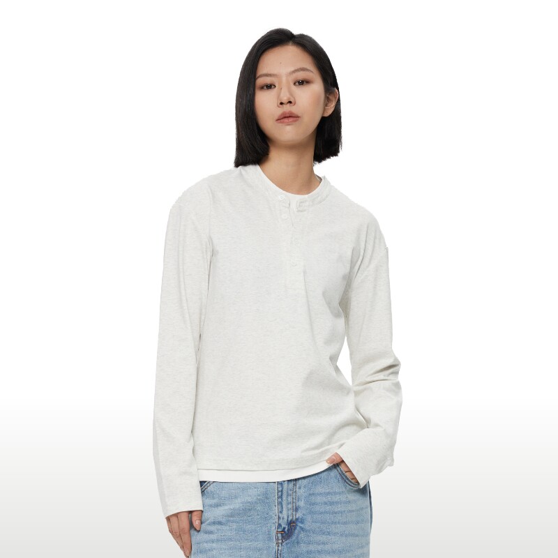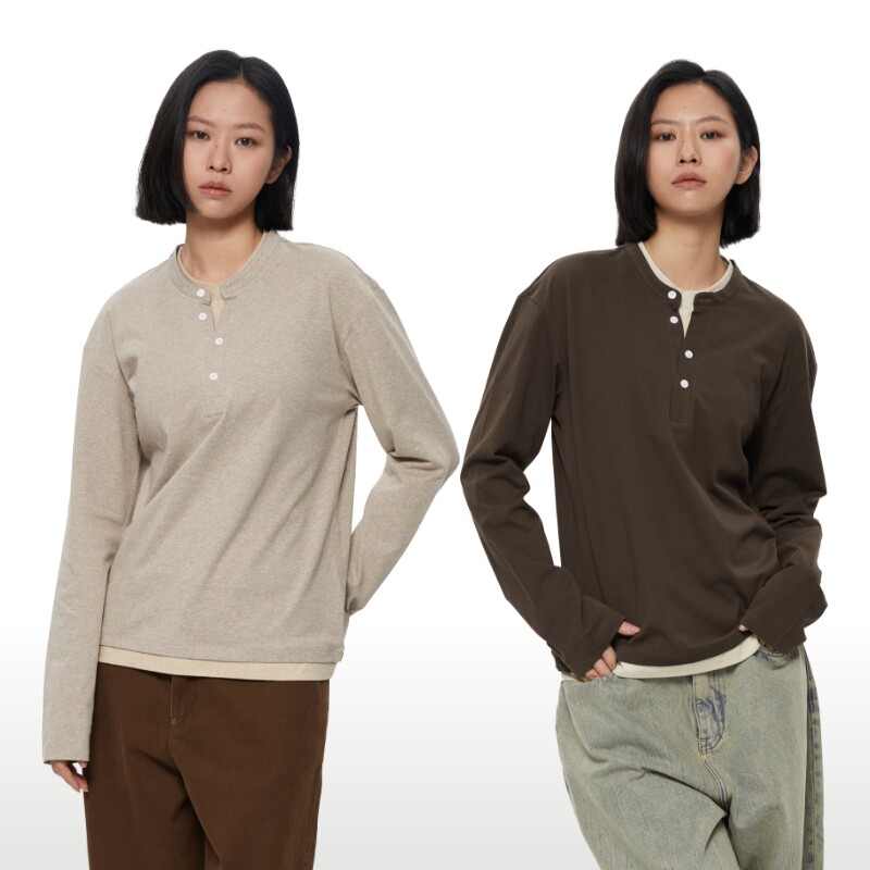 --------------------- WassupHouse 亨利领假两件上衣长袖t恤宽松休闲上衣纯色质感打底 【原售价】229元 【现售价】175元 【推荐理由】