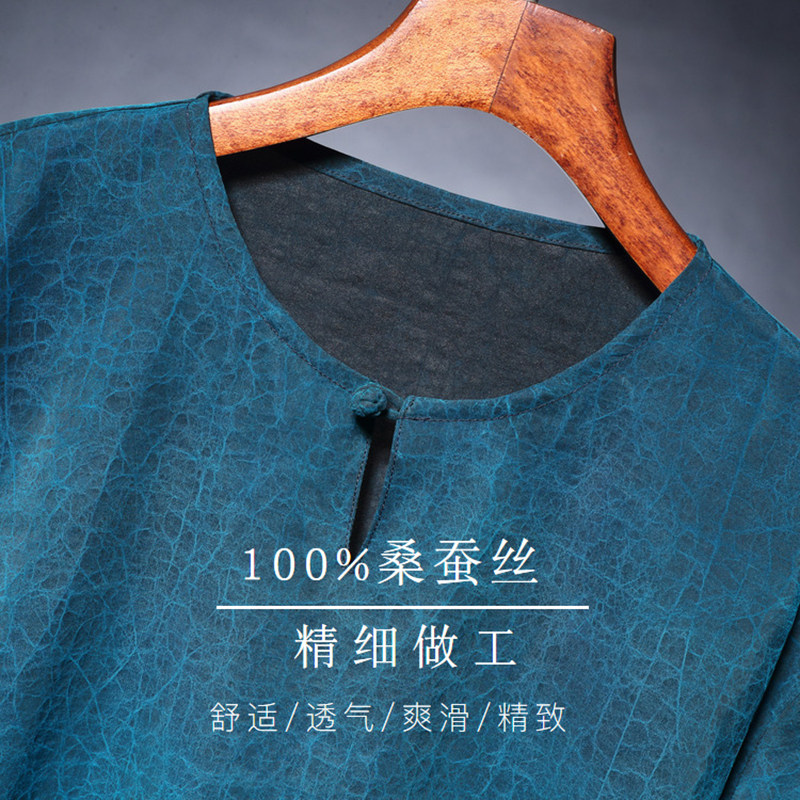 --------------------- 香云纱男装夏季新款桑蚕丝中老年短袖t恤国潮盘扣上衣宽松半袖衫 【原售价】789元 【现售价】421元 【推荐理由】