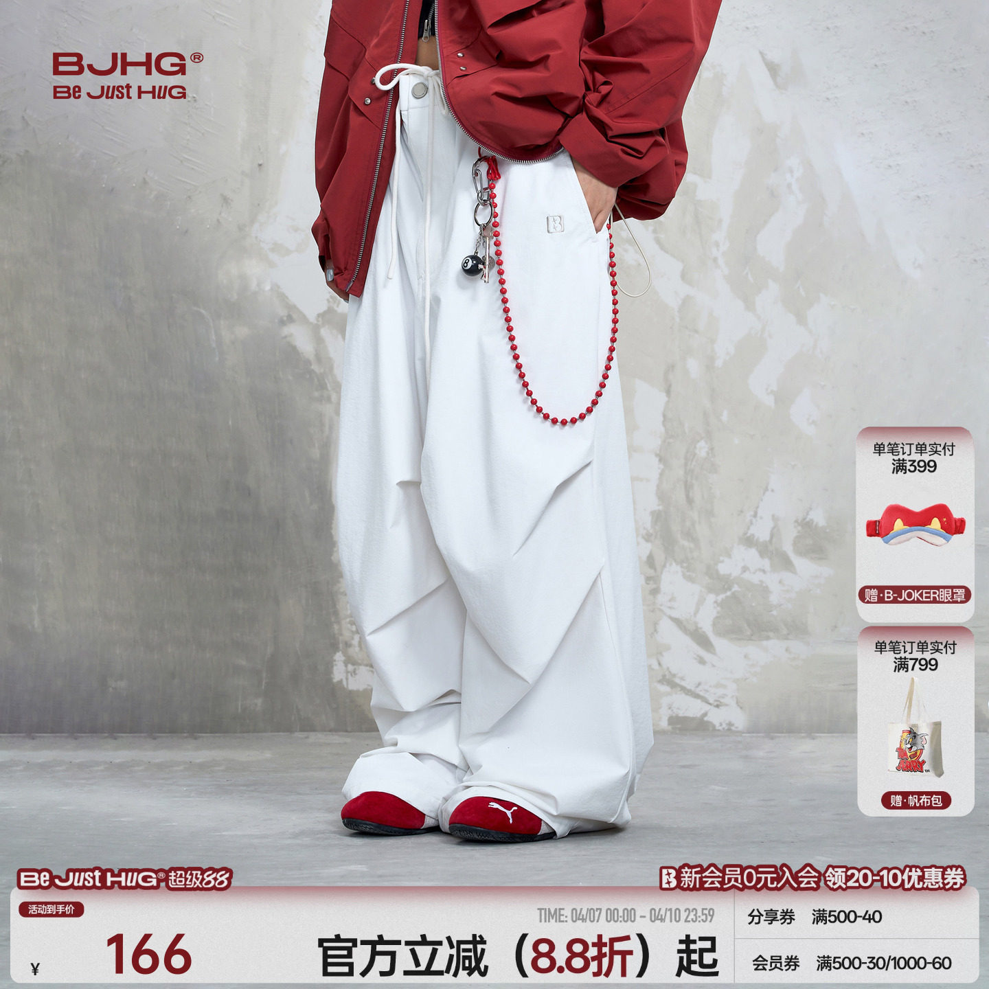 --------------------- BJHG不计后果白色工装裤子男款春季户外登山冲锋裤运动伞兵裤子女 【原售价】189元 【现售价】166元 【推荐理由】