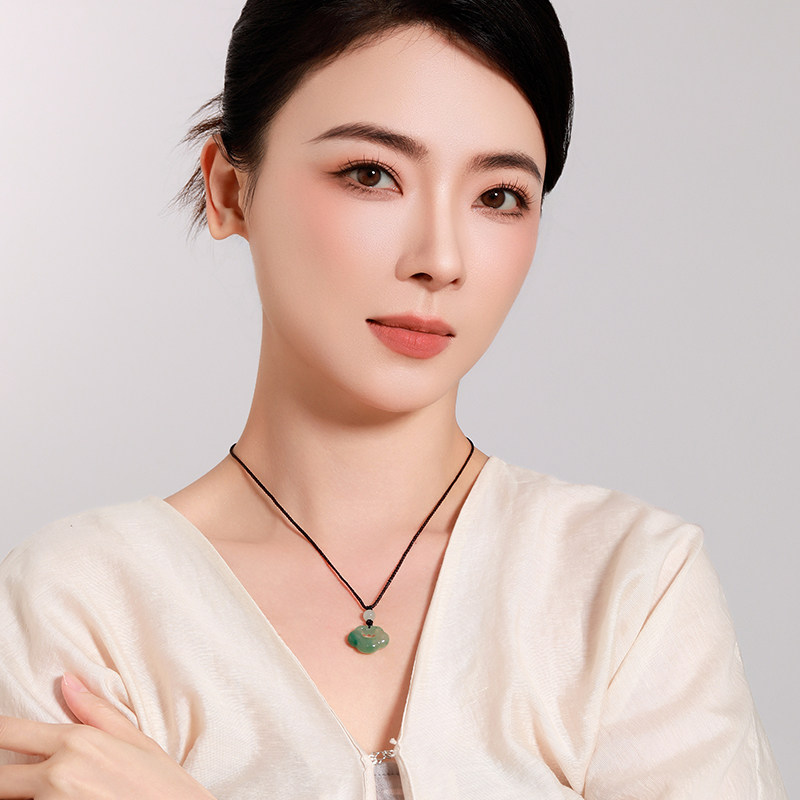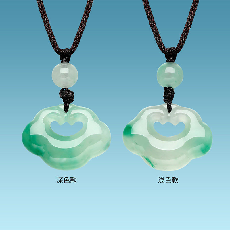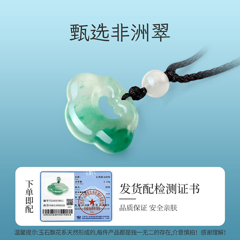 梦金园天然冰种非洲翠长命锁吊坠飘花锁包挂坠国潮风玉石坠送妈妈