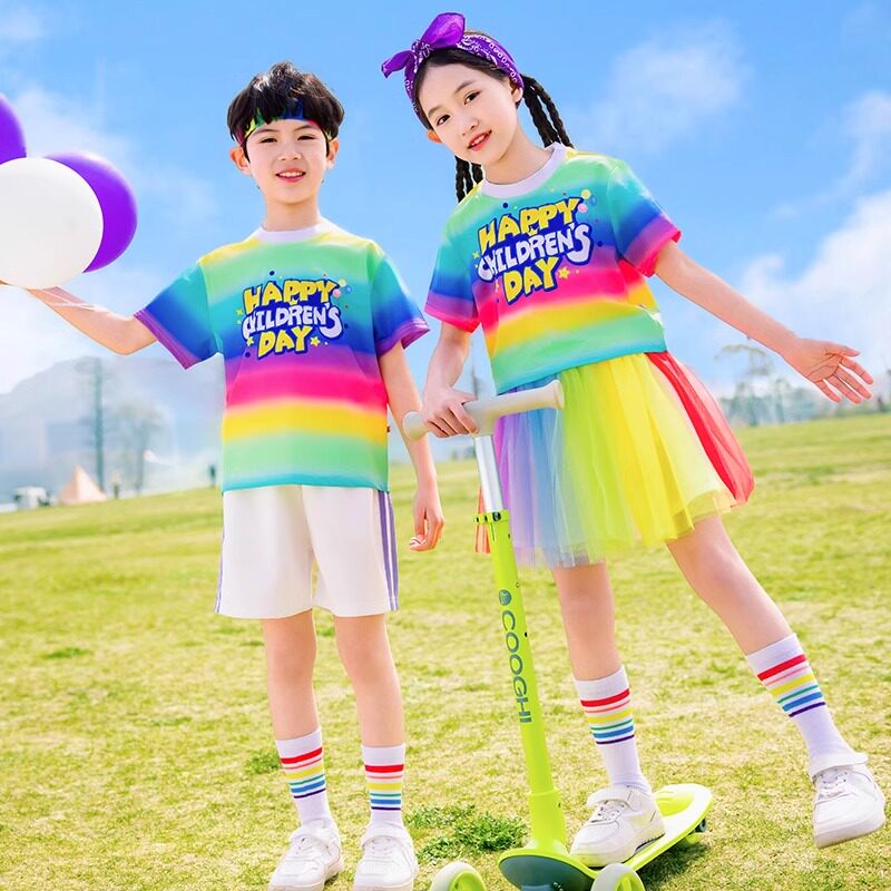 六一儿童啦啦队演出服大合唱糖果色幼儿园班服走秀小学生夏毕业照