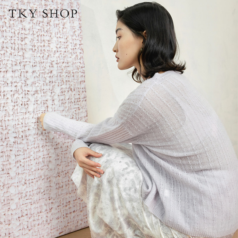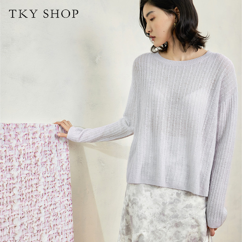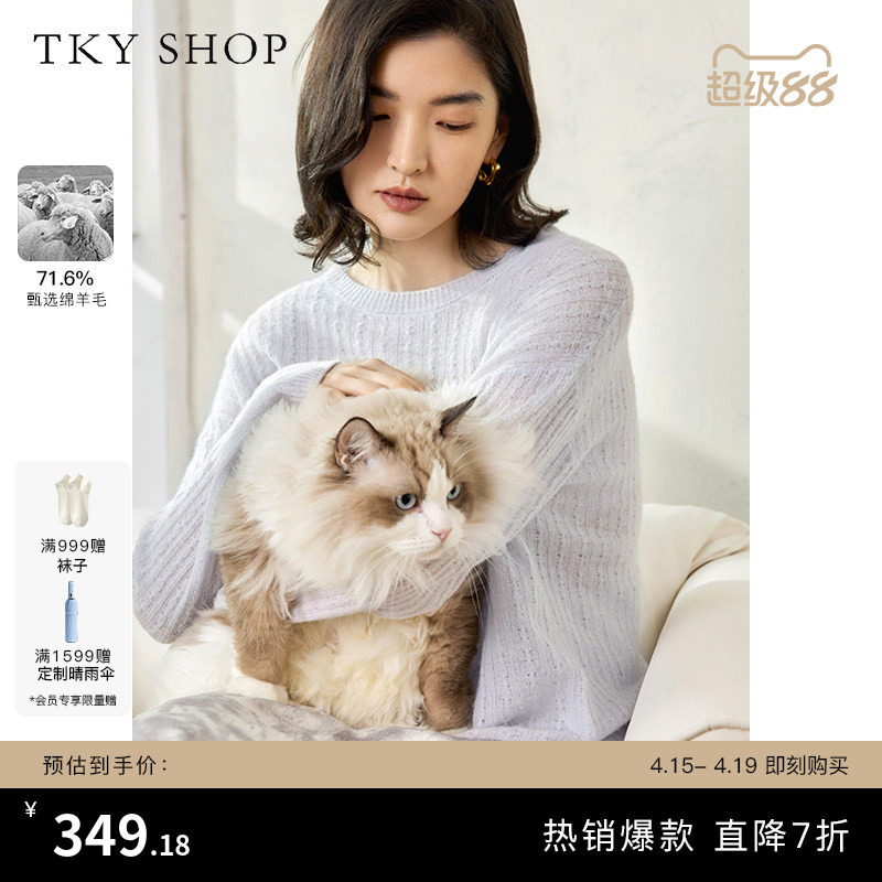 淘宝TKY SHOP圆领宽松针织衫女春秋新款慵懒风薄款毛衣女气质休闲上衣