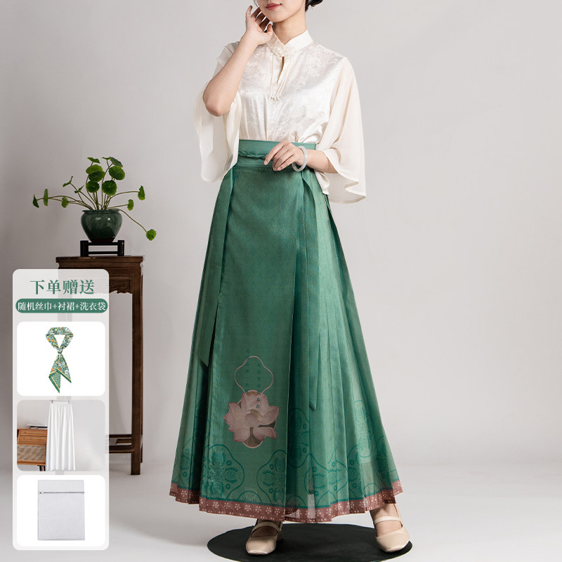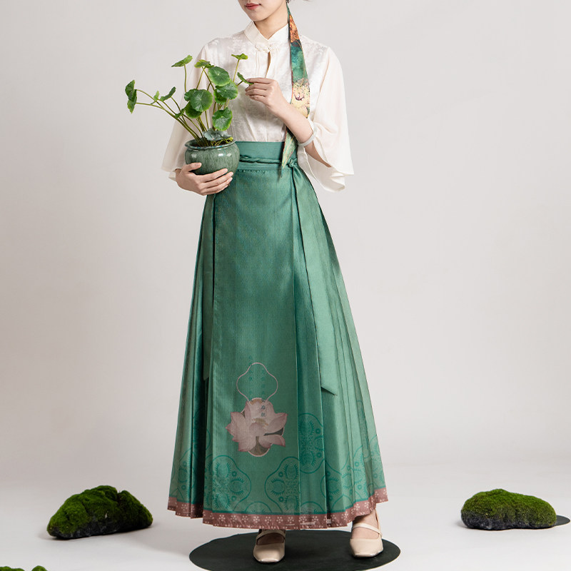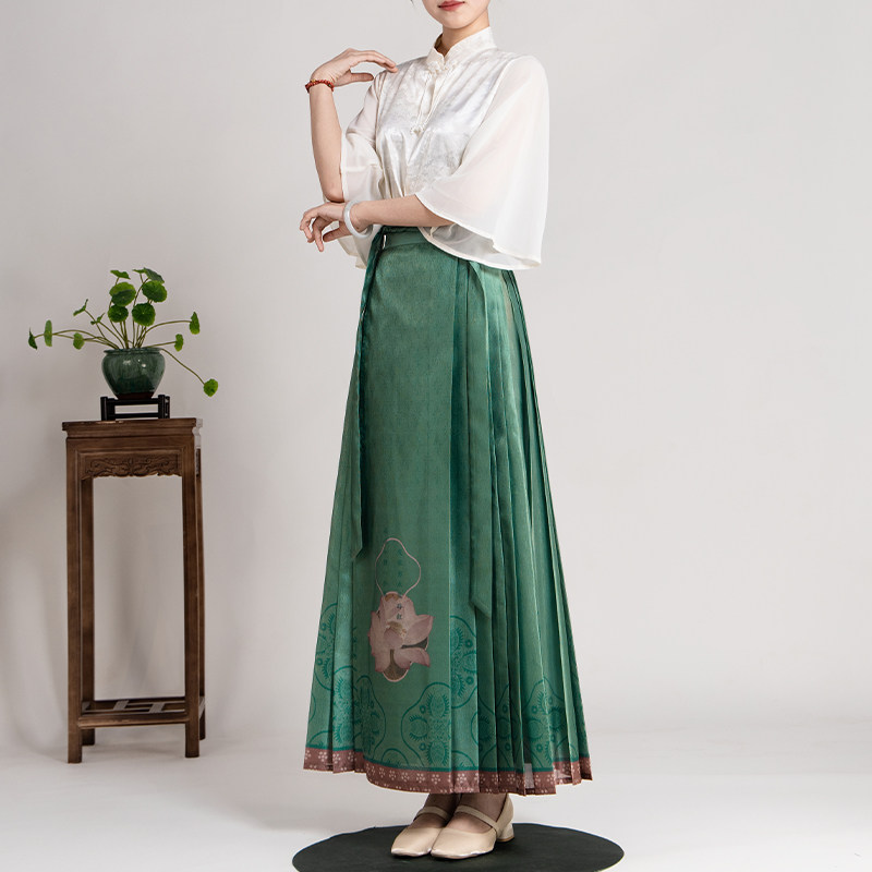 --------------------- 爱奇葩iqipa 【出水芙蓉】新中式马面裙女绿色荷花设计汉服半身裙 --------------------- --------------------- 【原价】1739元 【券后价】829.5元