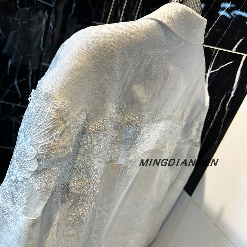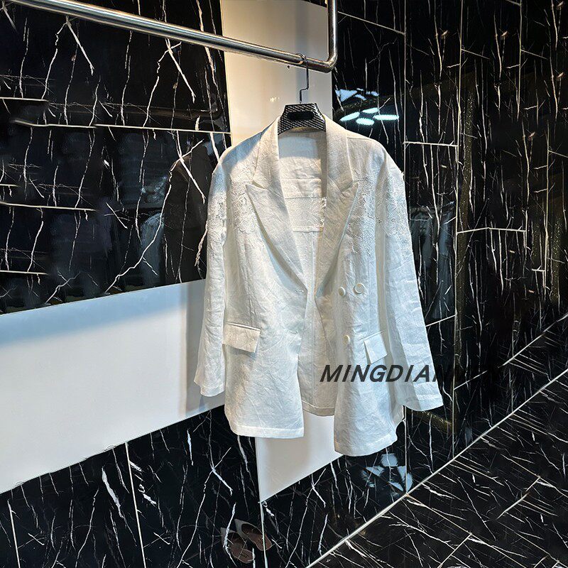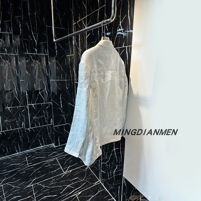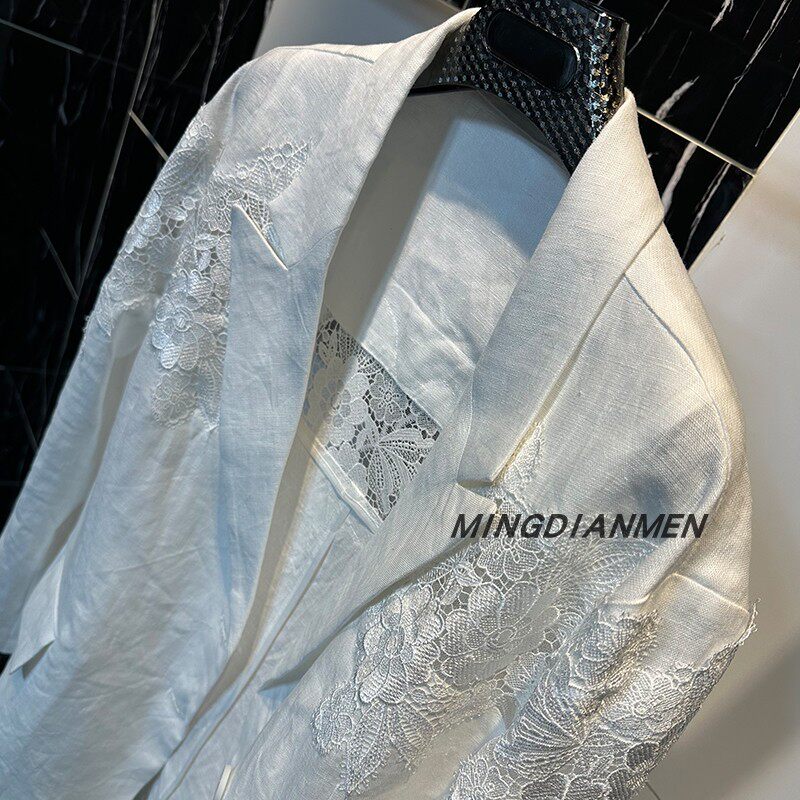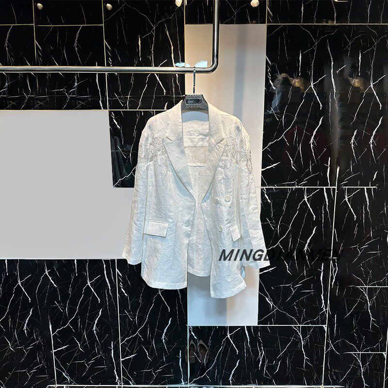 2026春秋行穿搭法式白麻拼接蕾丝花西装外套高级感气质轻奢优雅
