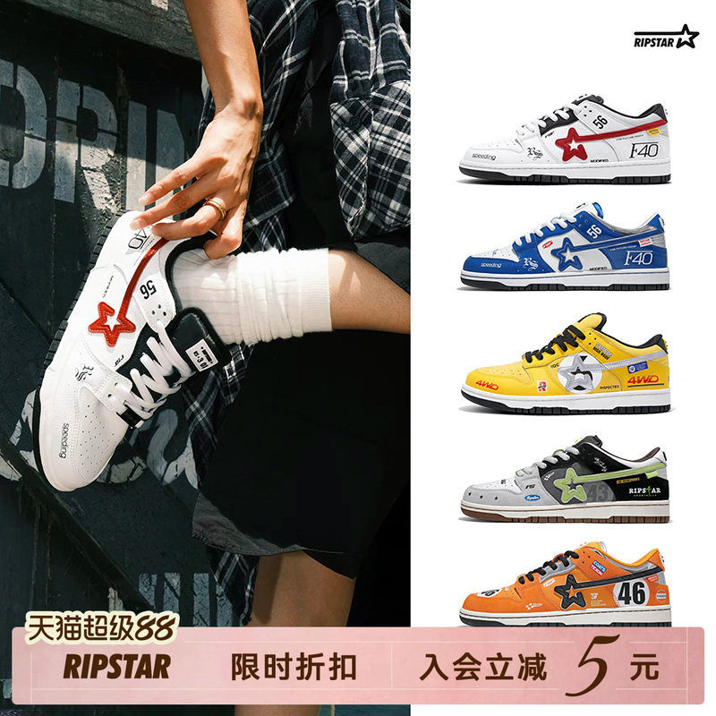 RIPSTAR/爆炸星白色休闲板鞋百搭男女新款春夏增高透气美式运动鞋