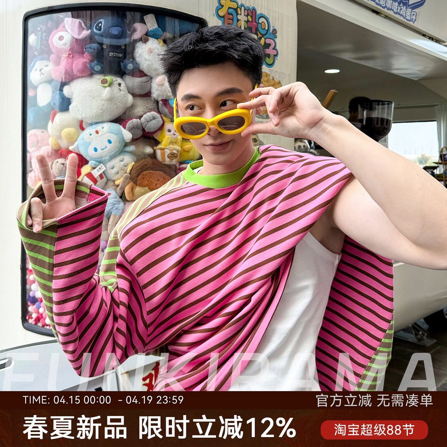 --------------------- 2026春季新款撞色T恤原创设计美式休闲拼接条纹撞色毛圈棉男长袖 【原售价】139.9元 【现售价】122.9元 【推荐理由】