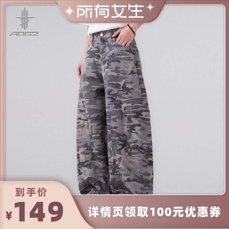 淘宝【所有女生直播间】AOGZ美式多口袋迷彩工装裤男女春季新款弯刀裤