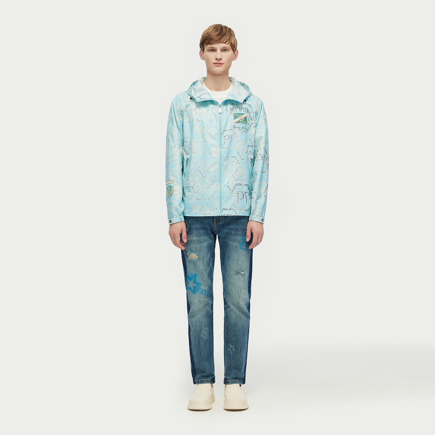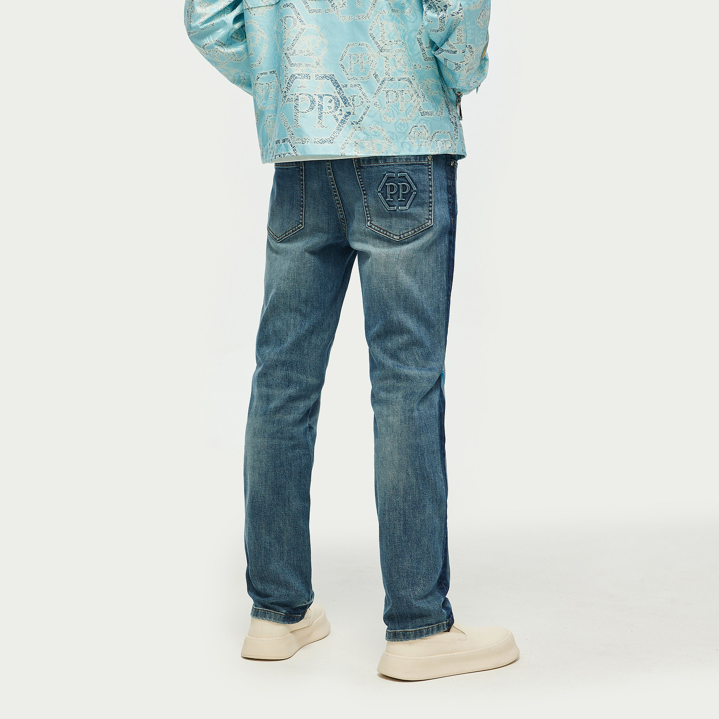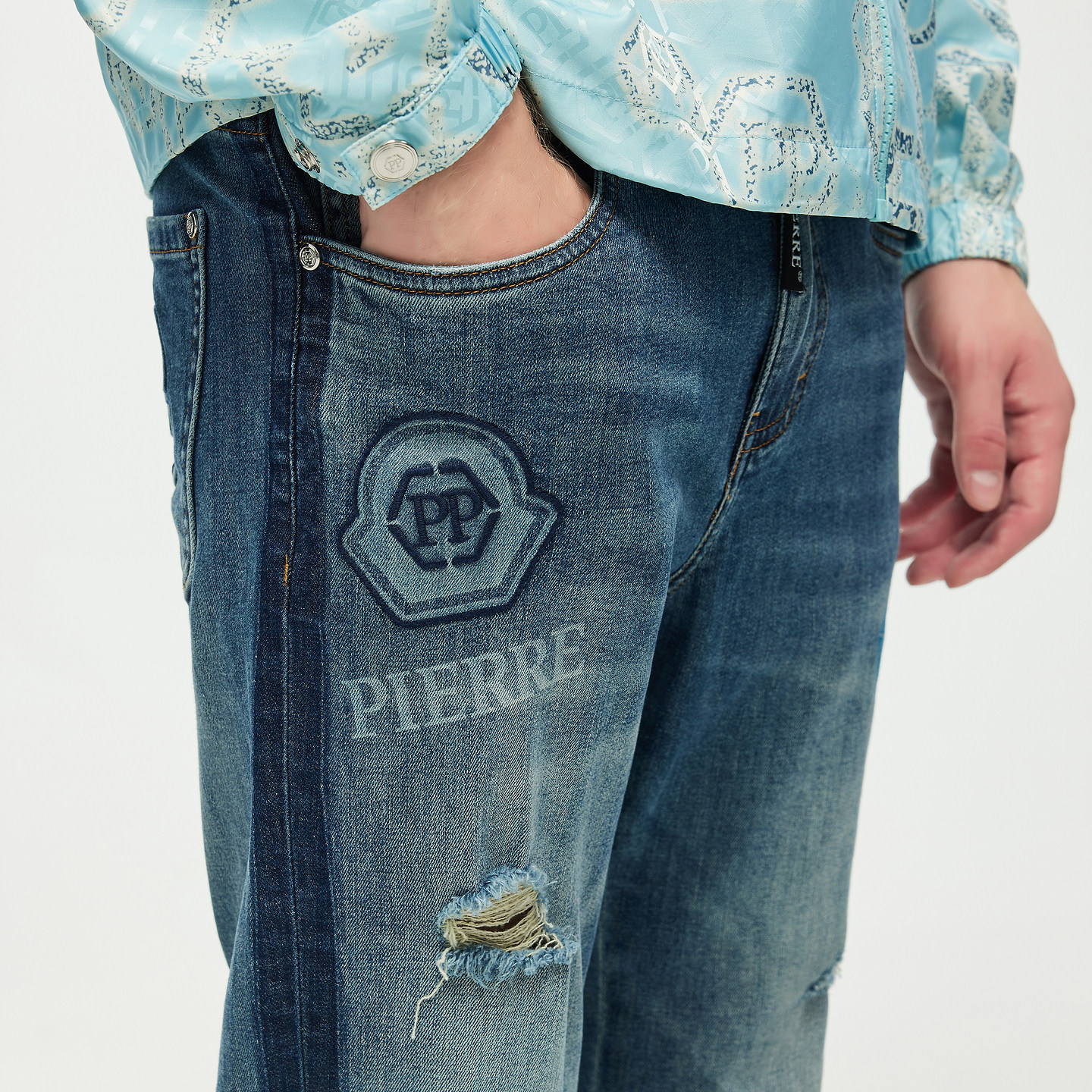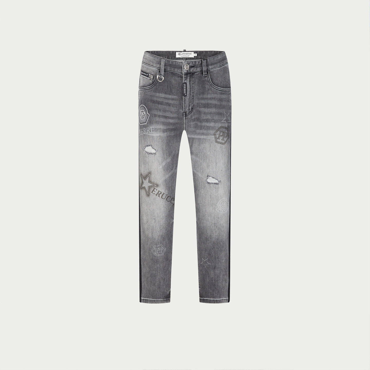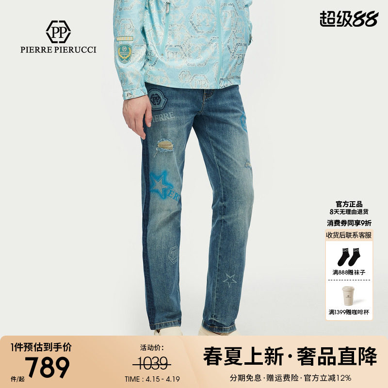 淘宝PP意大利品牌轻奢男装2026春夏季新款破洞水洗牛仔裤修身百搭长裤