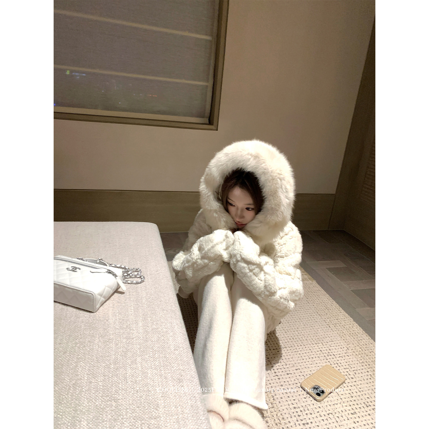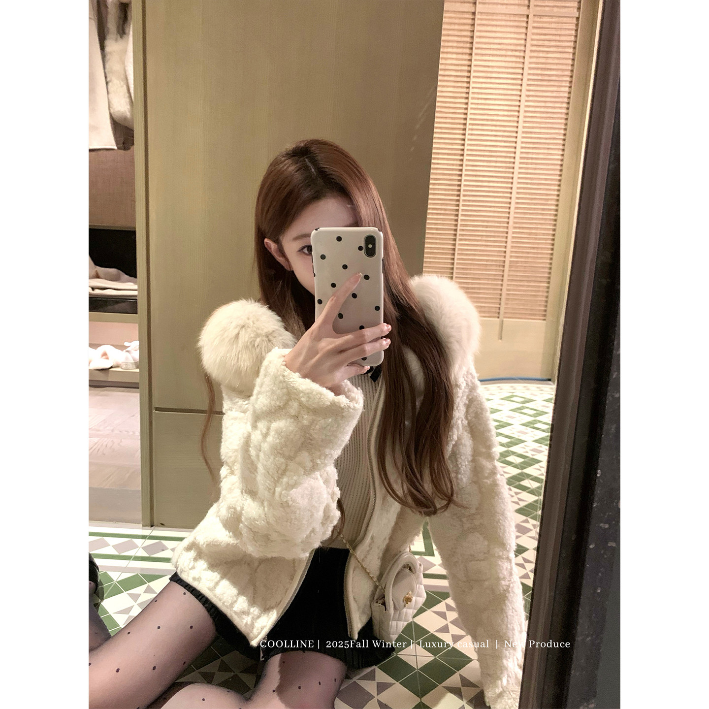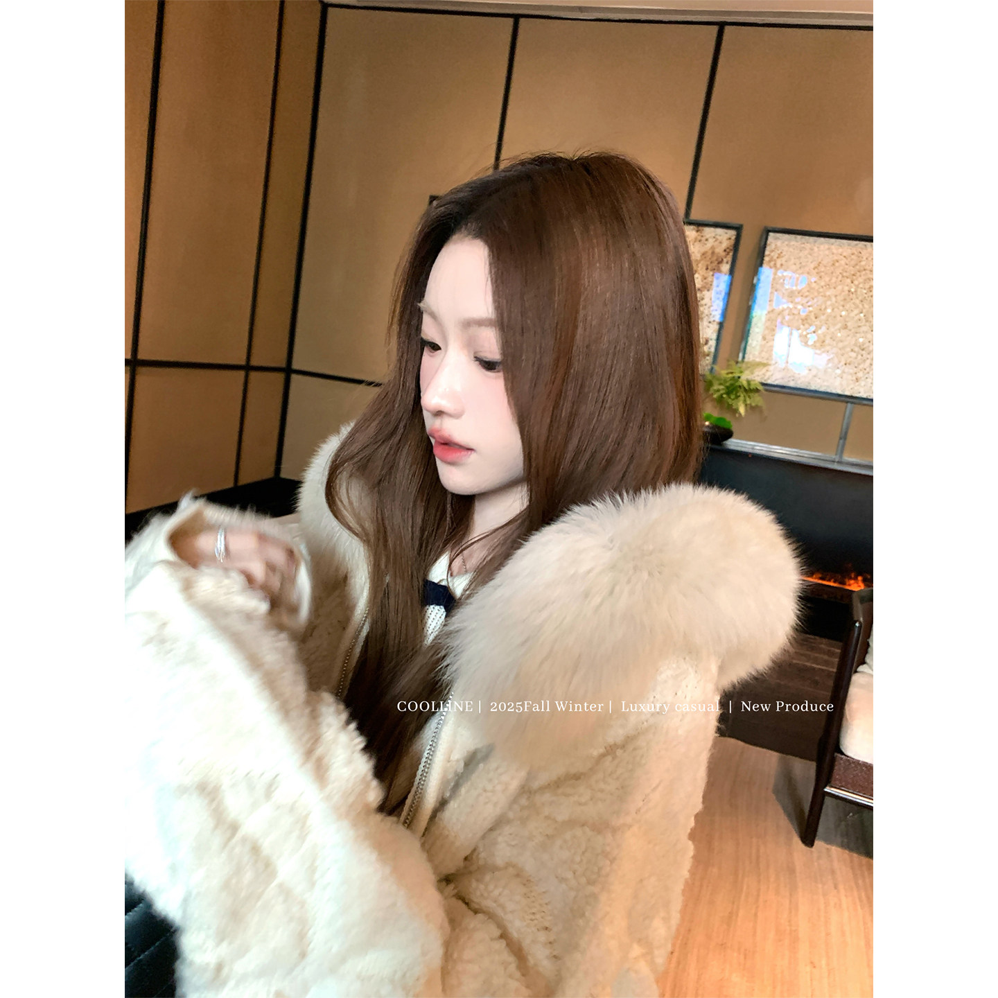 COOLLINE林子熙 雪天使 千金感大毛领羊毛连帽外套女小众贵气上衣