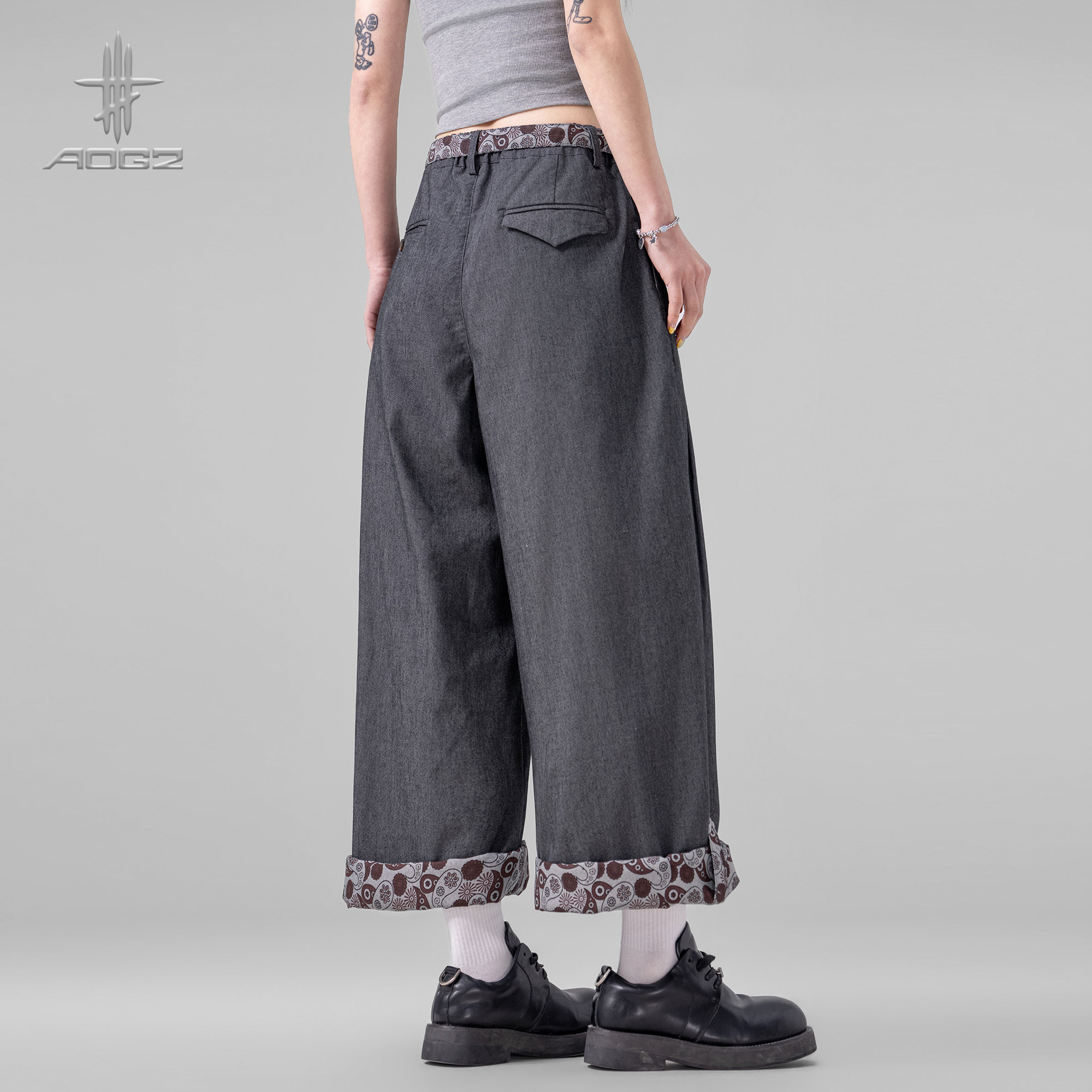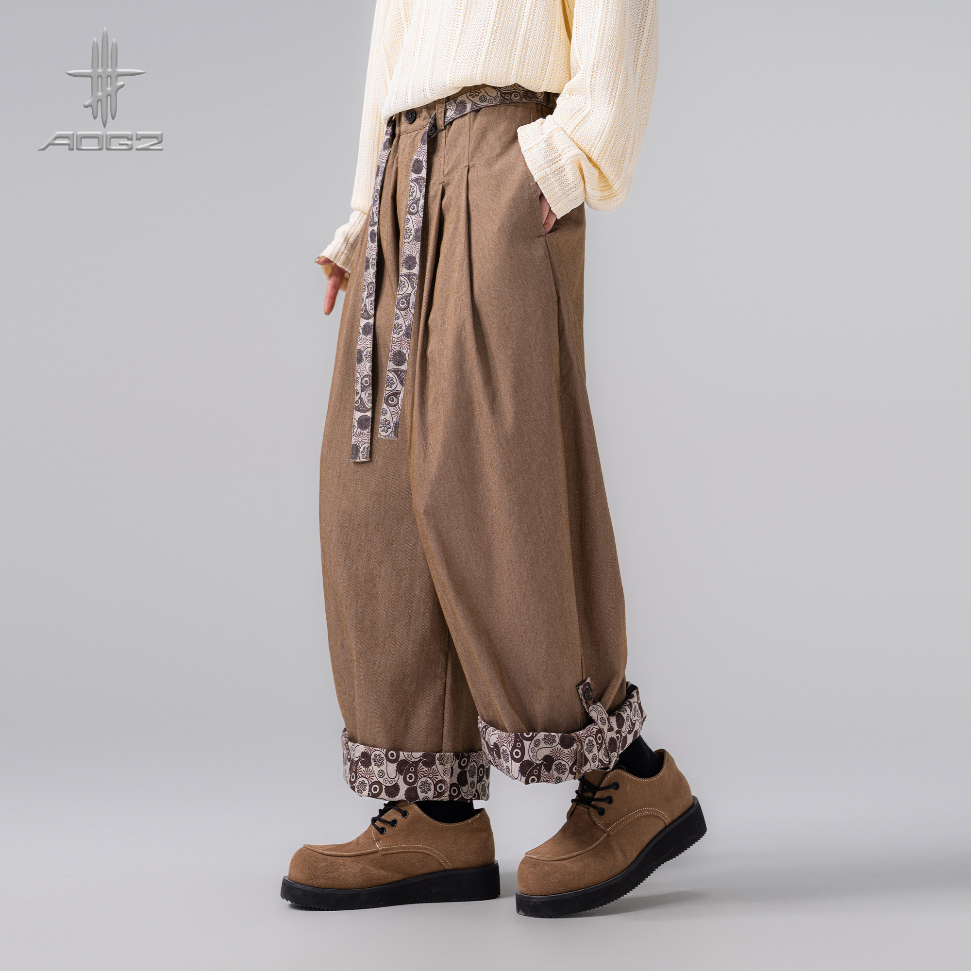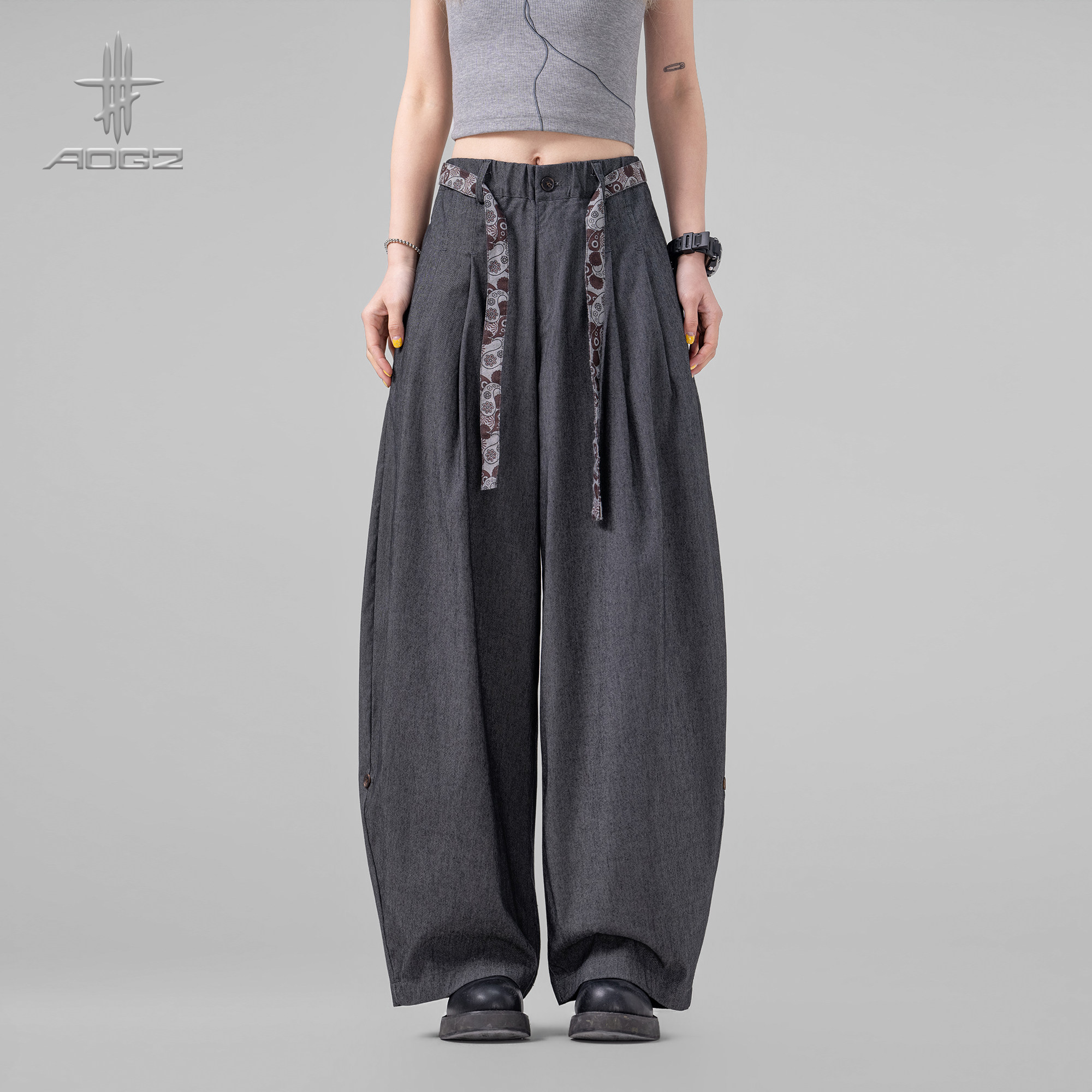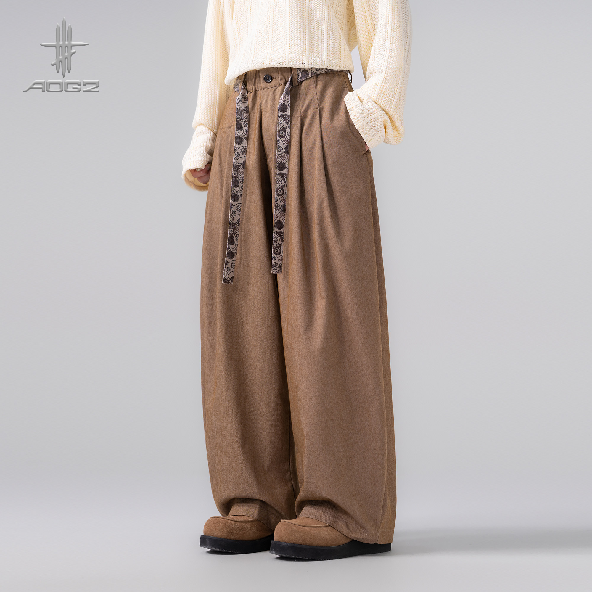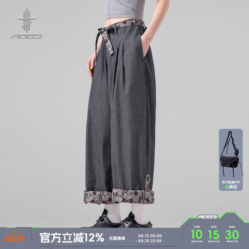 AOGZ立体垂感阔腿裤男女春季新款腰果花拼接美式宽松休闲长裤子潮