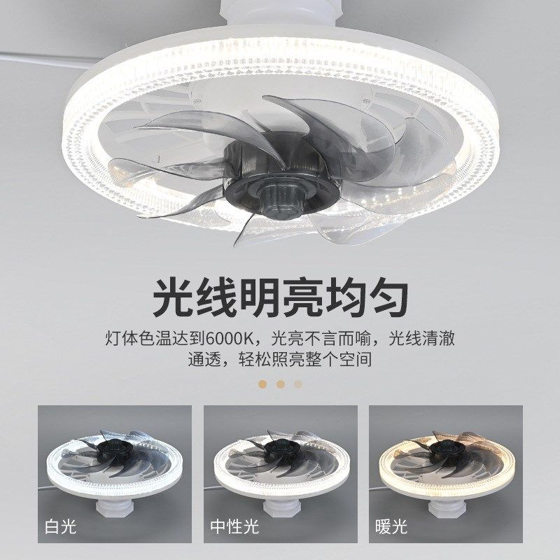 淘宝2024新款E27螺口风扇灯客厅吸顶吊扇灯餐厅卧室led三色光智能遥控