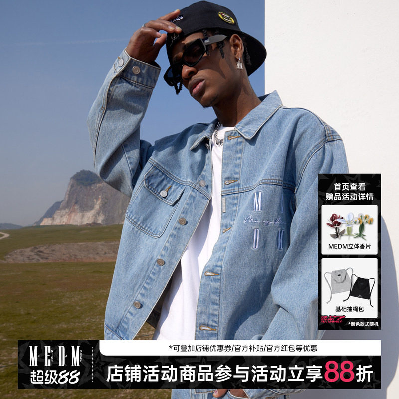 --------------------- MEDM国潮刺绣牛仔外套男女短款潮牌春秋宽松街头复古情侣夹克上衣 --------------------- --------------------- 【原价】369元 【券后价】305元