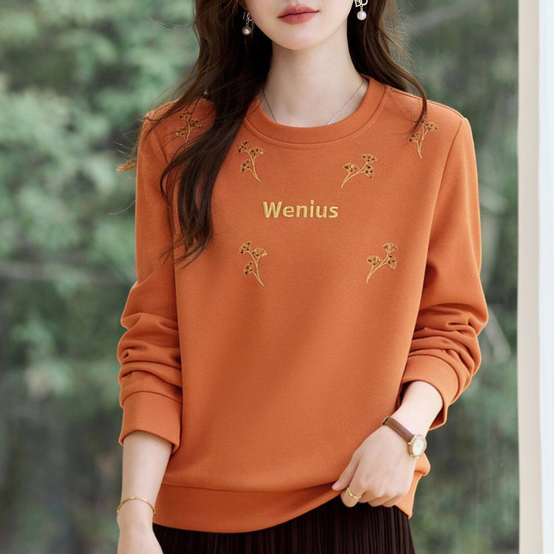 圆领正肩女士卫衣2026新款春秋爆款高端洋气宽松显瘦无帽上衣薄款