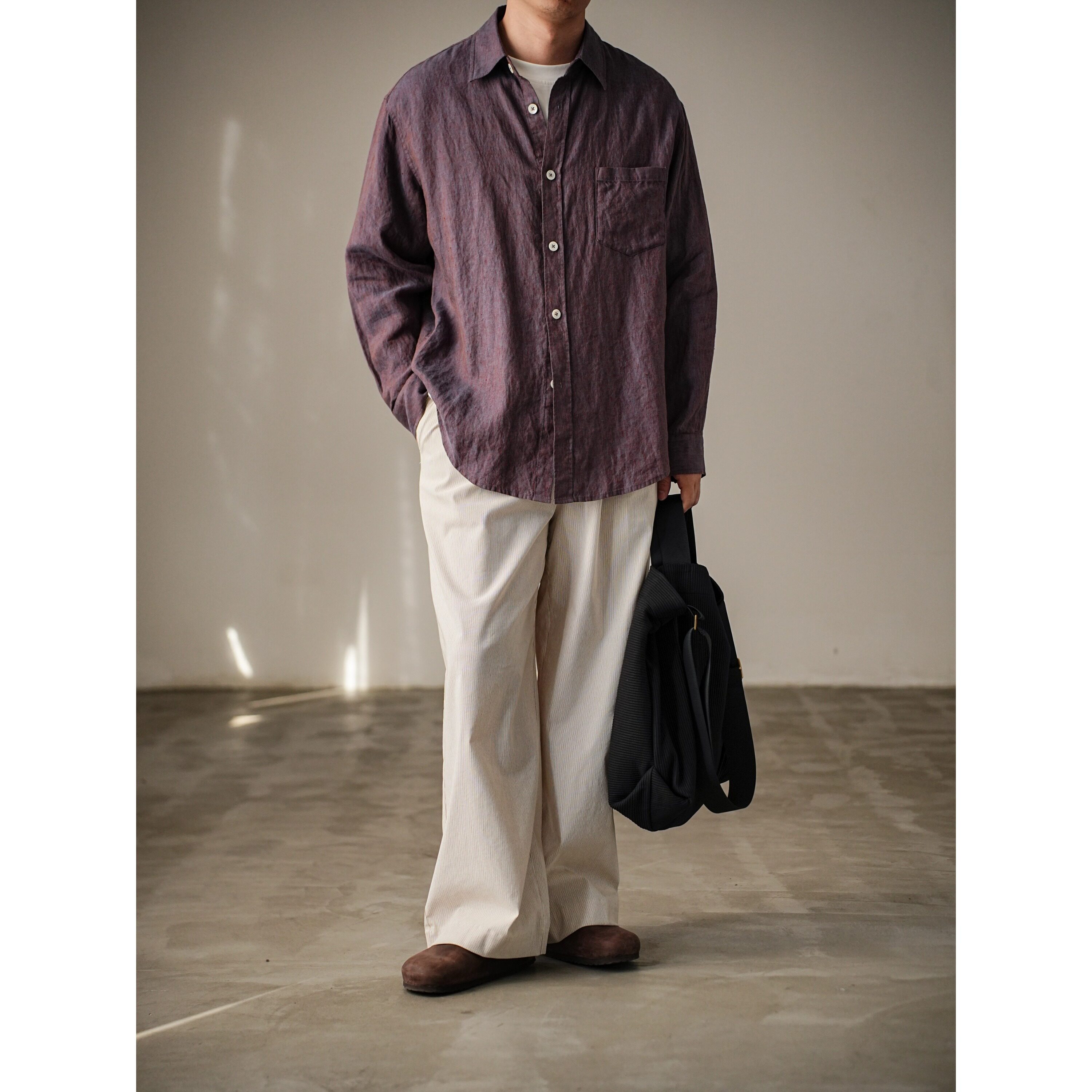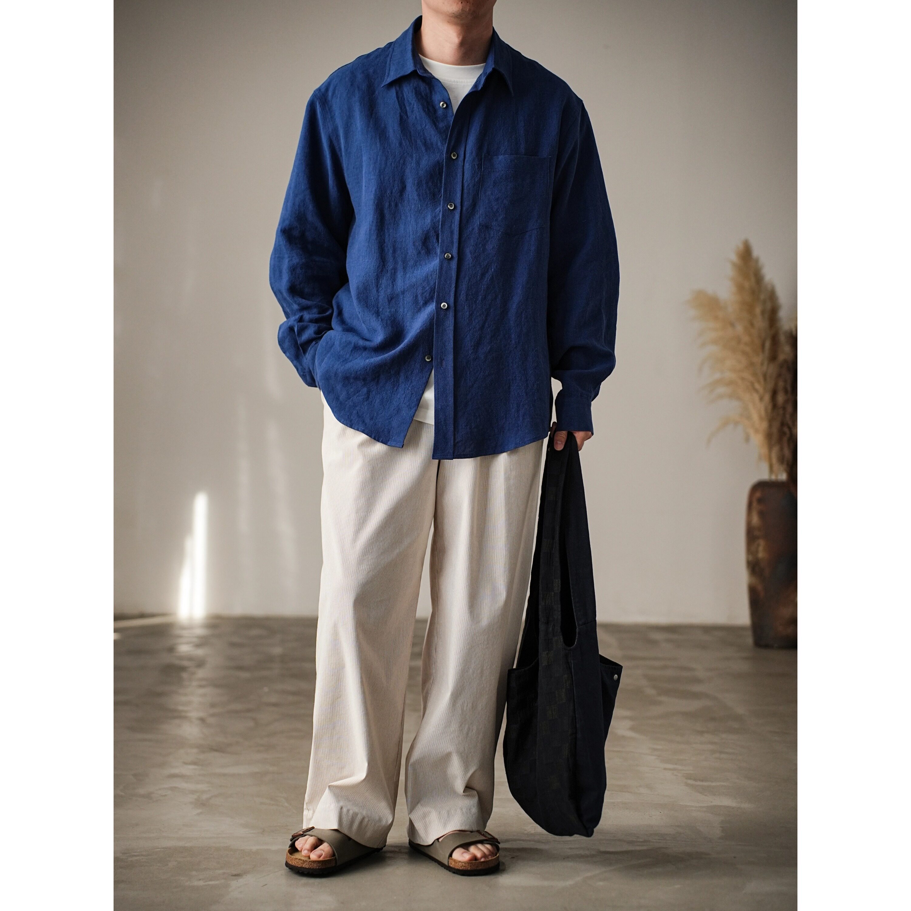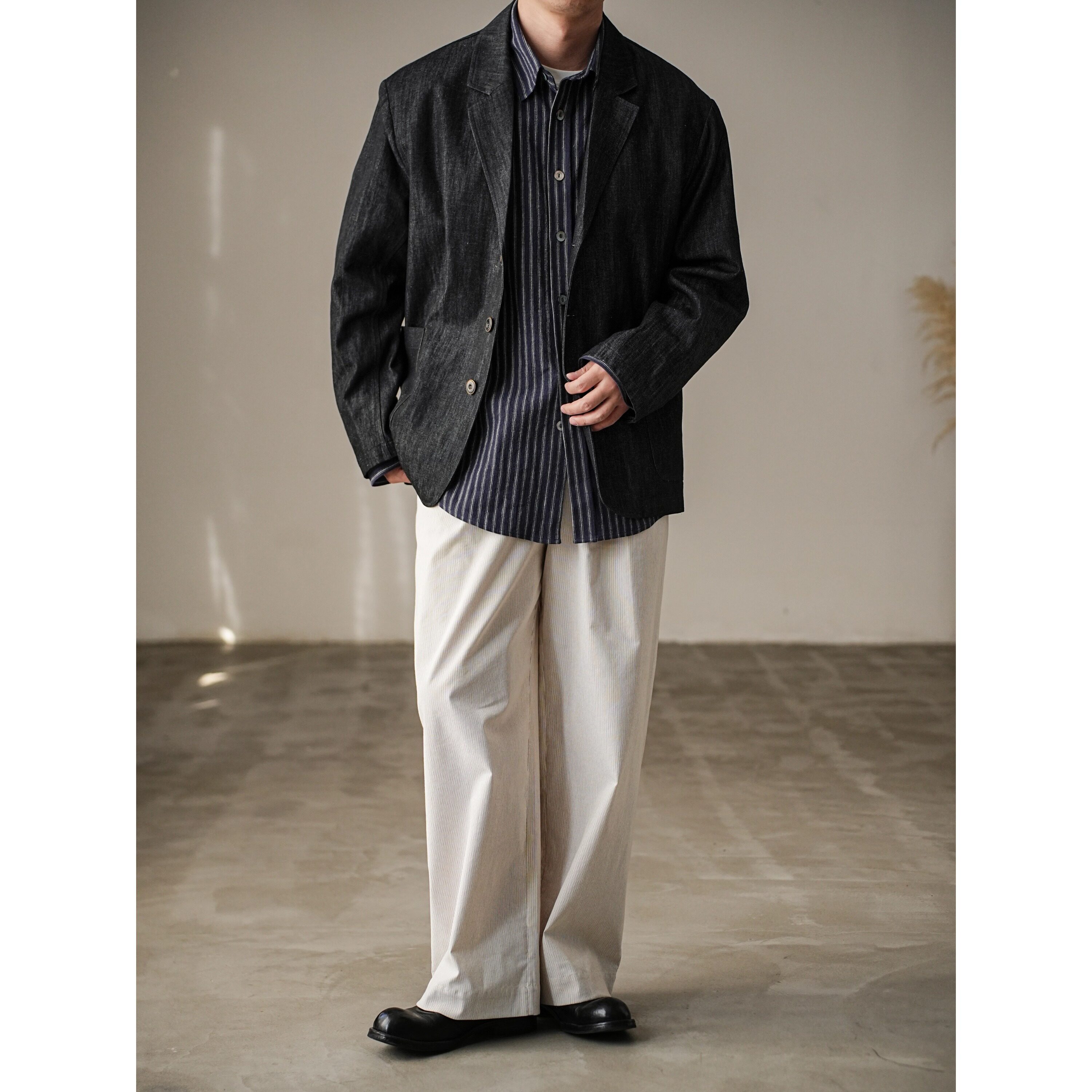 WATEREVER「春光」日本进口色织细条纹米白色长西裤 质感休闲裤