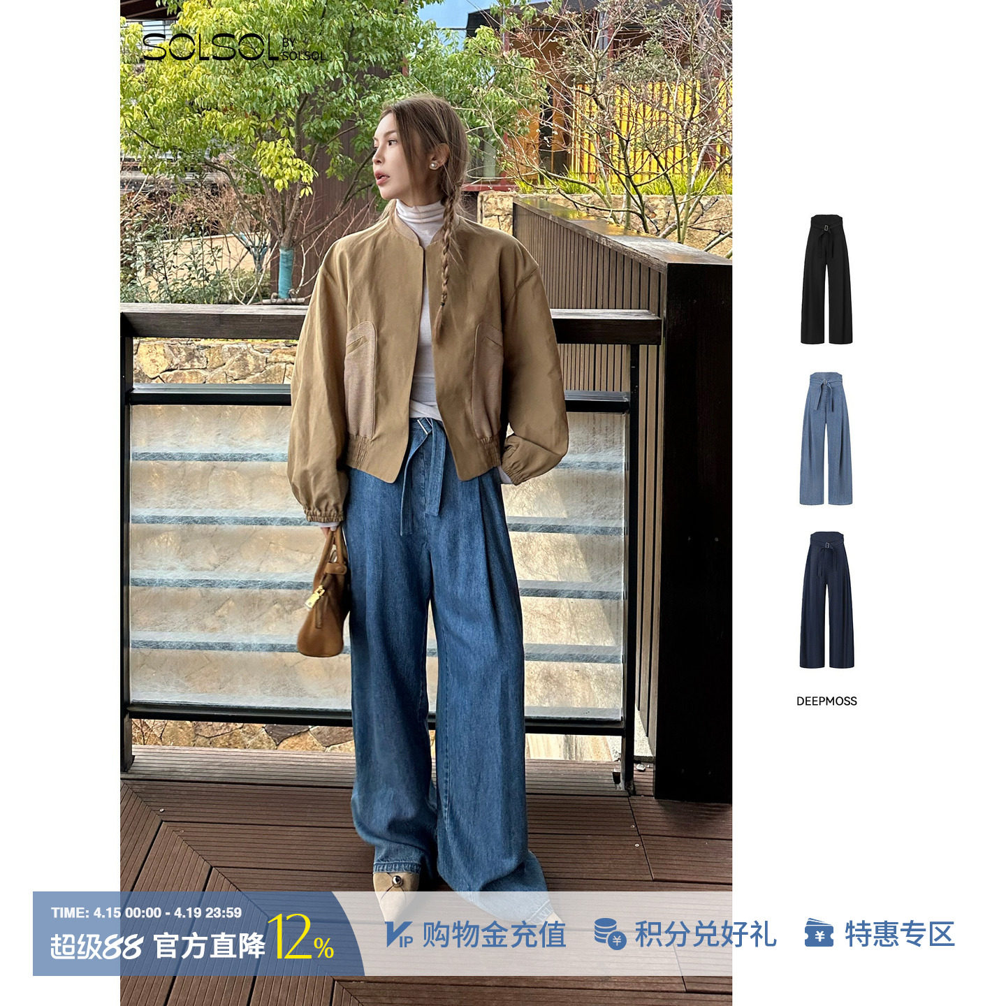 DEEPMOSS 26春夏新款 泛光羊毛混纺/丹宁感微弧长裤SOLSOL买手店