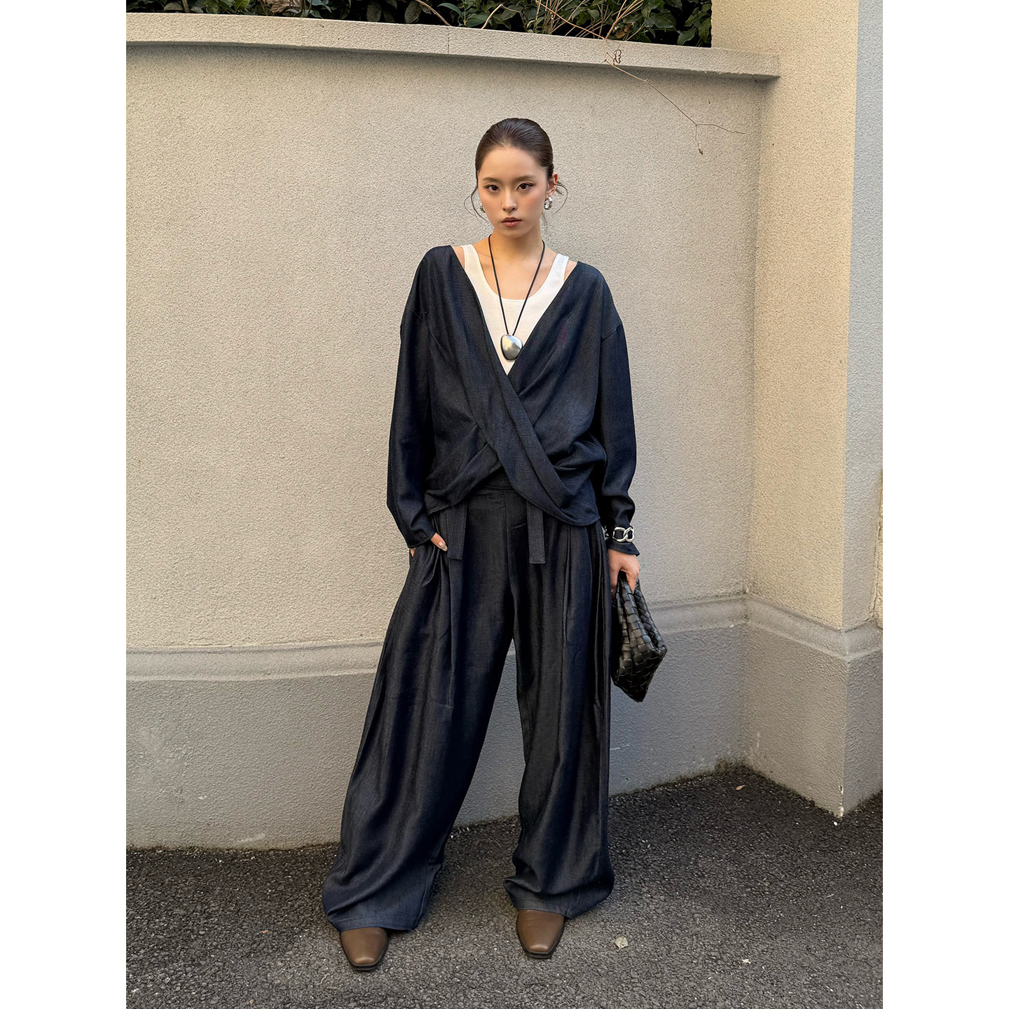 --------------------- DEEPMOSS 26春夏新款 泛光羊毛混纺/丹宁感微弧长裤SOLSOL买手店 【原售价】1680元 【现售价】1512元 【推荐理由】