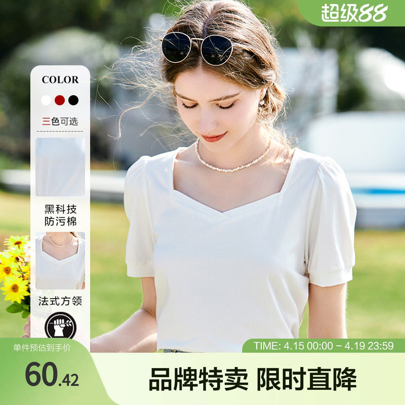--------------------- betu百图夏季新款方领泡泡袖短袖T恤设计感小众上衣 【原售价】227元 【现售价】59元 【推荐理由】