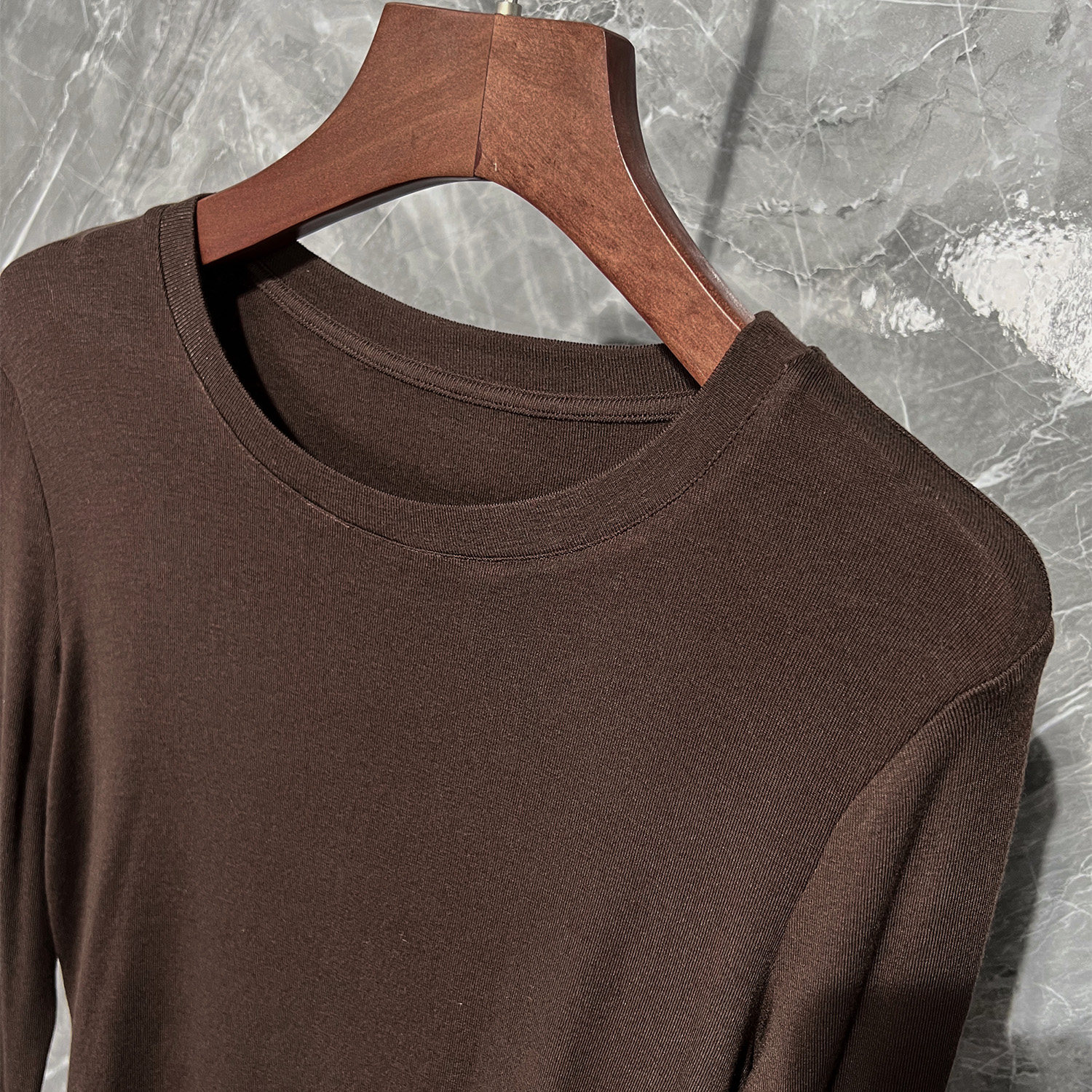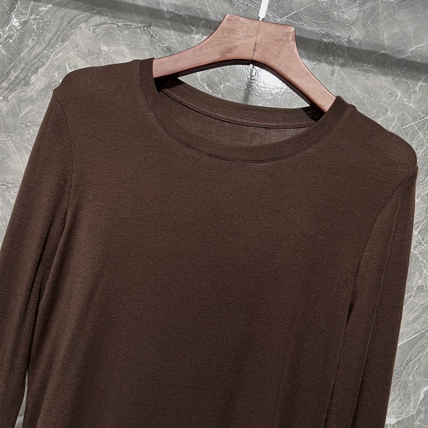 现货!超舒适的天丝羊毛长袖打底衫 百搭 叠搭神器 纯色长袖T恤女