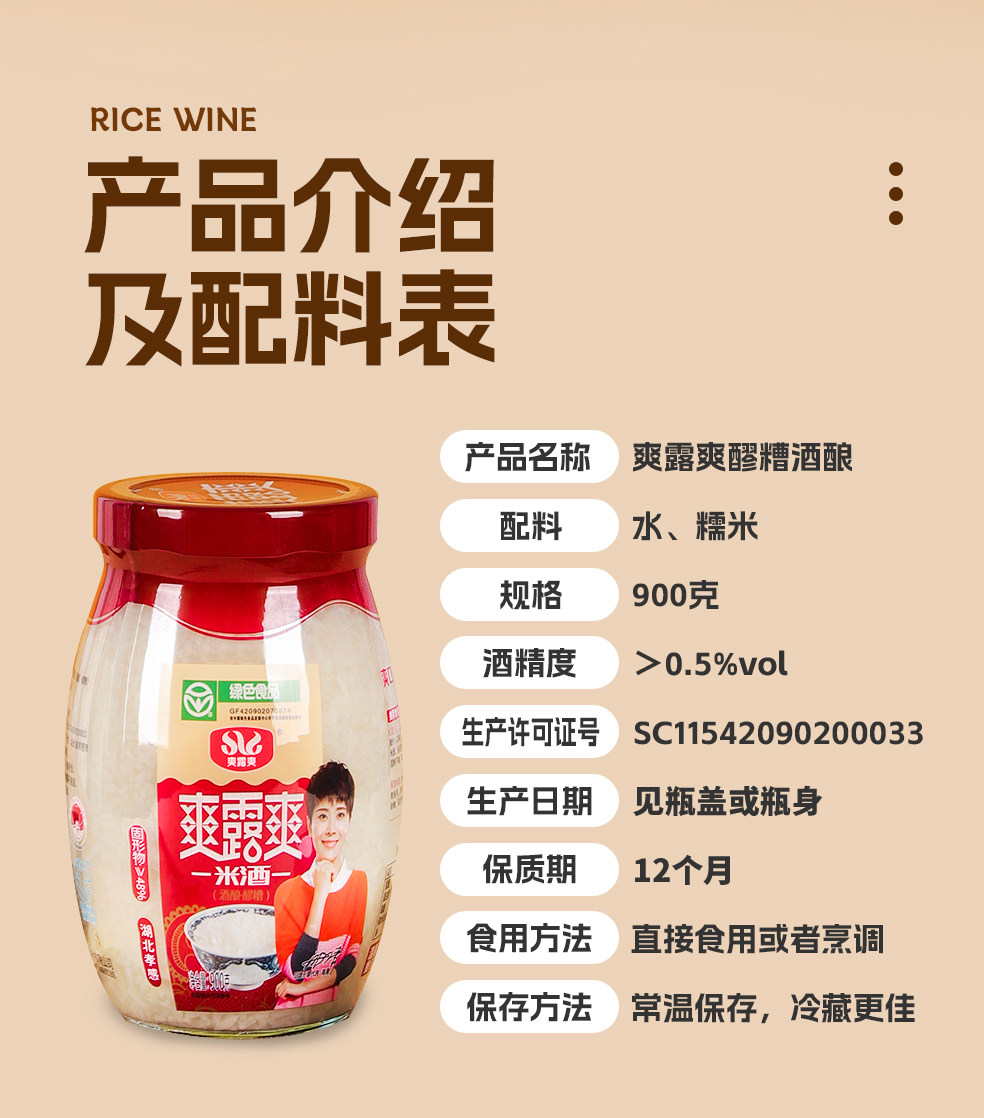 淘宝爽露爽鲜榨佬米酒900g孝感特产月子米酒大瓶甜米酒糯米酒