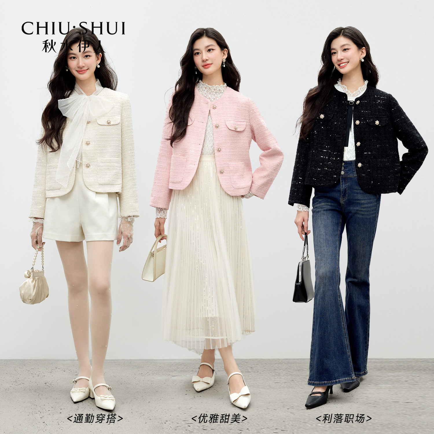 秋水伊人时尚对称口袋上衣2026年春季新款女气质经典小香风短外套