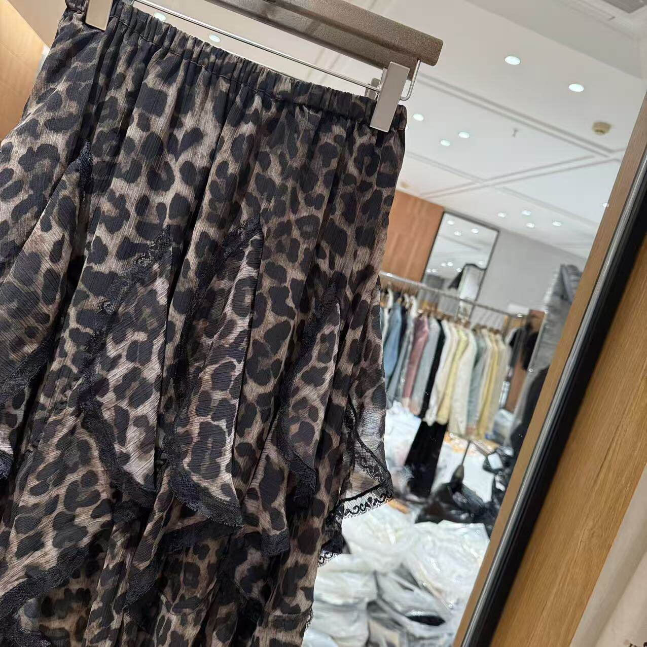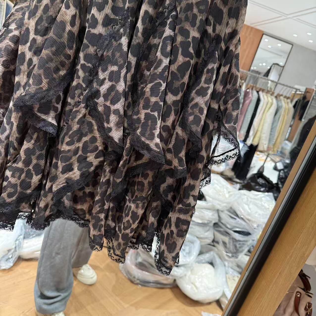 欧洲站2026春新款欧货松紧腰豹纹拼接蕾丝层次感时髦高端半裙女潮