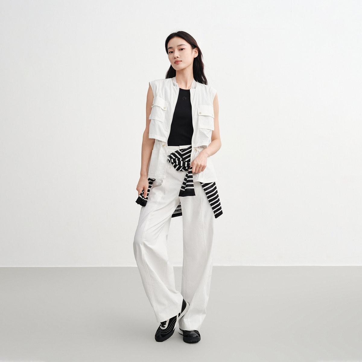 --------------------- EP雅莹2025早秋新款女装 白色简约直筒高腰休闲弯刀裤6493A 【原售价】1699元 【现售价】1189元 【推荐理由】