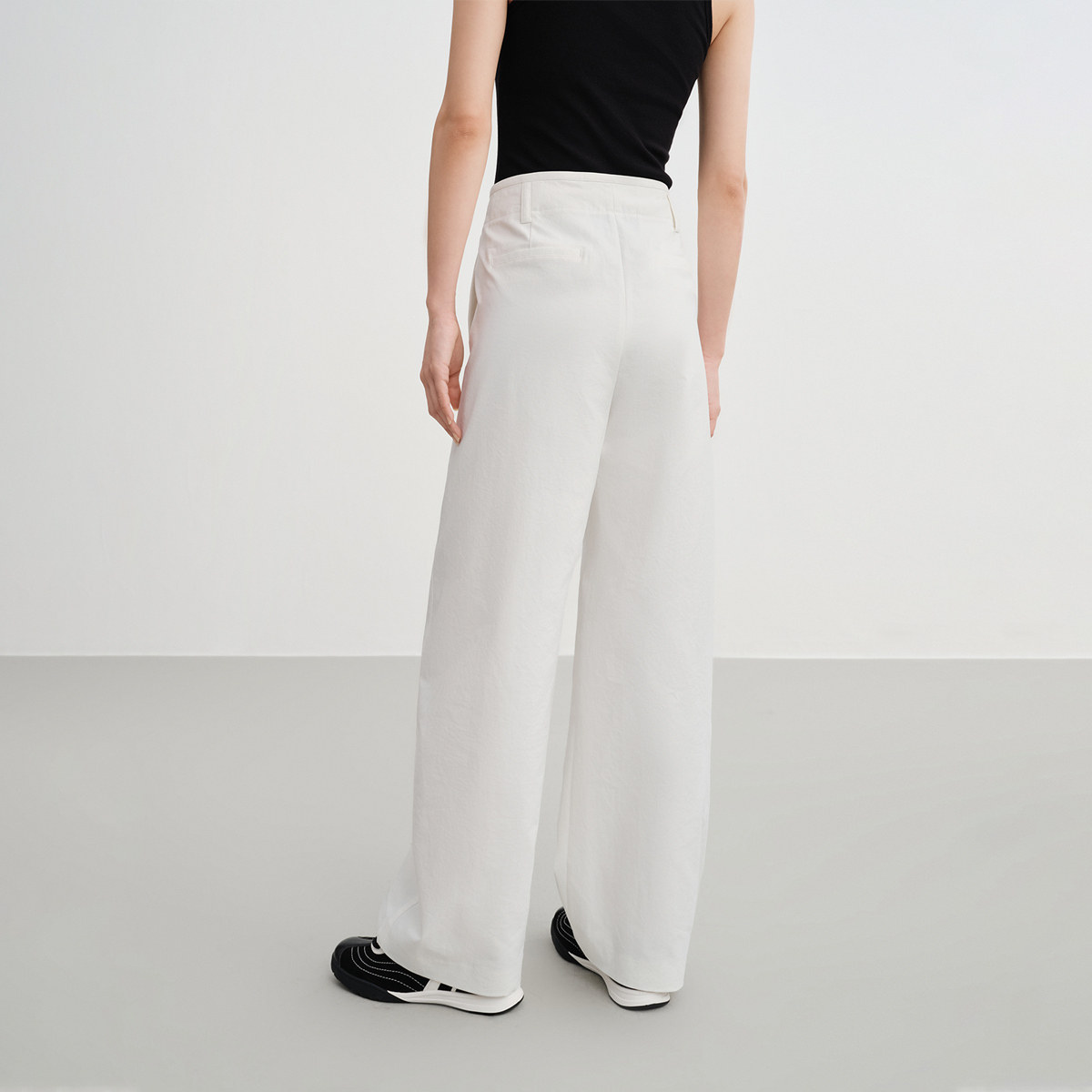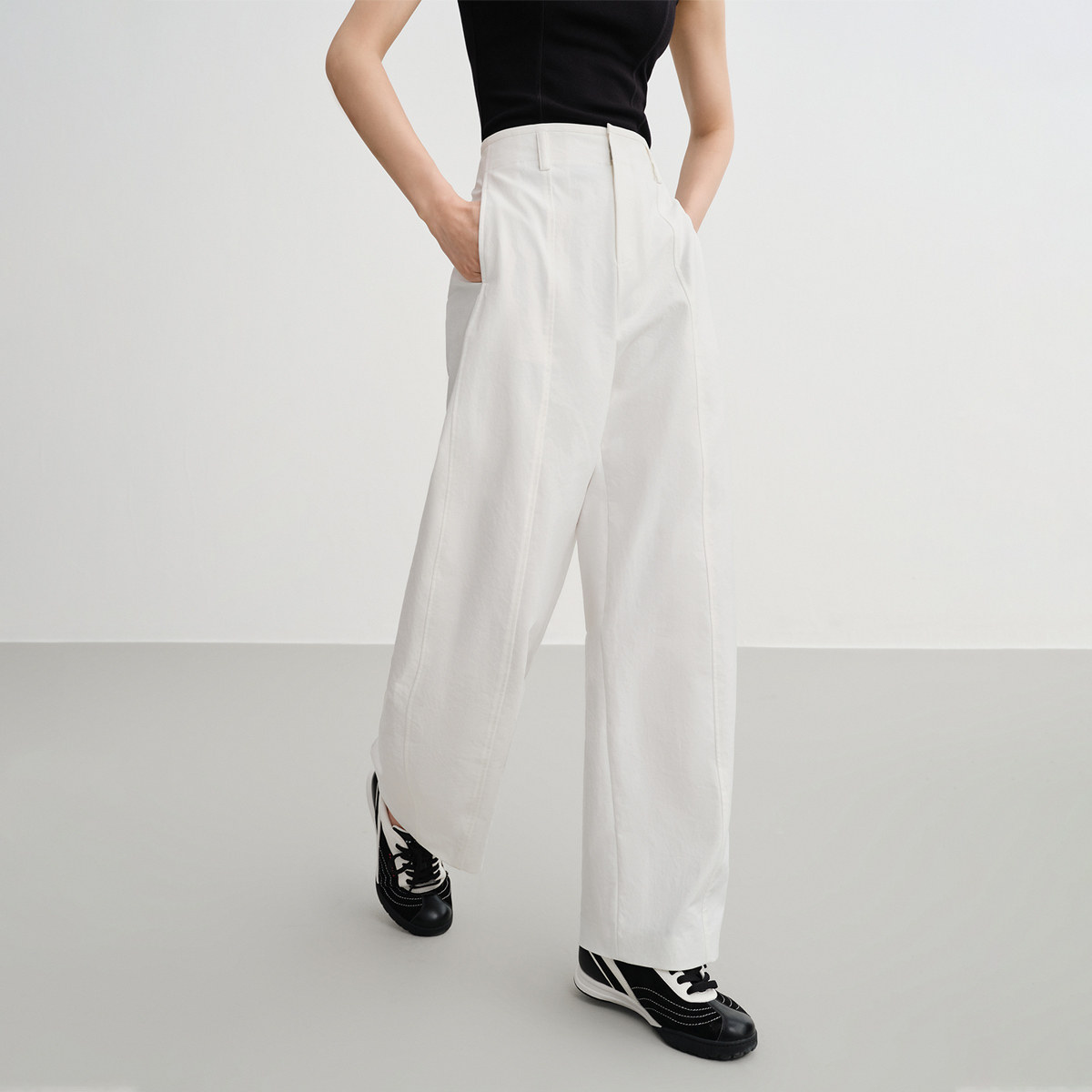 EP雅莹2025早秋新款女装 白色简约直筒高腰休闲弯刀裤6493A
