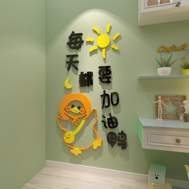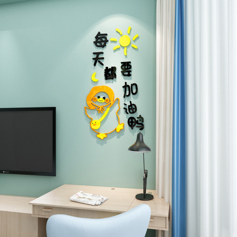 卡通加油鸭励志文字贴纸网红床头卧室房间背景墙面3d立体墙贴装饰