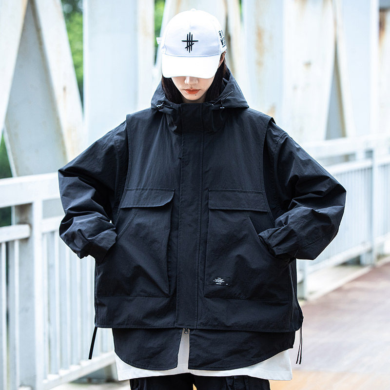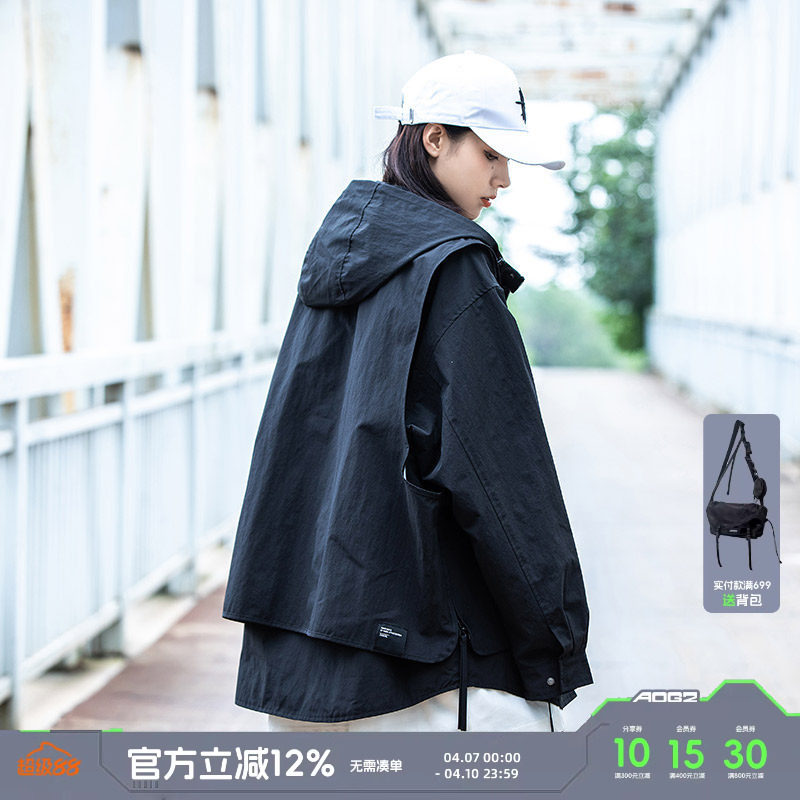 --------------------- AOGZ美式假两件工装连帽夹克外套男女春秋季新款情侣户外冲锋上衣 【原售价】399元 【现售价】219元 【推荐理由】