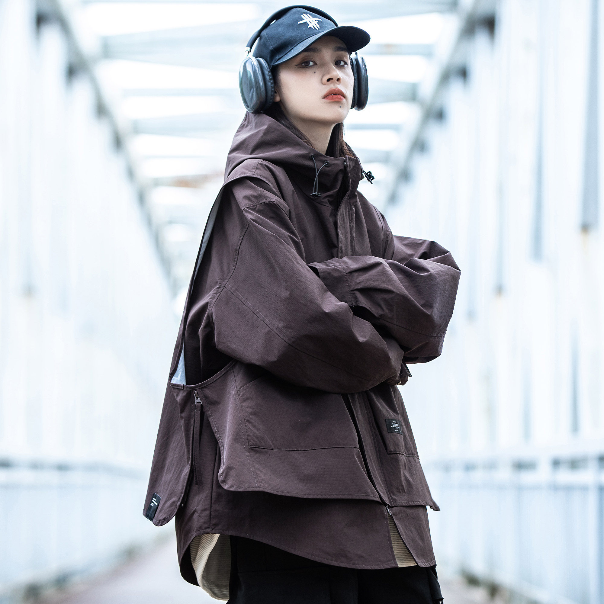AOGZ美式假两件工装连帽夹克外套男女春秋季新款情侣户外冲锋上衣