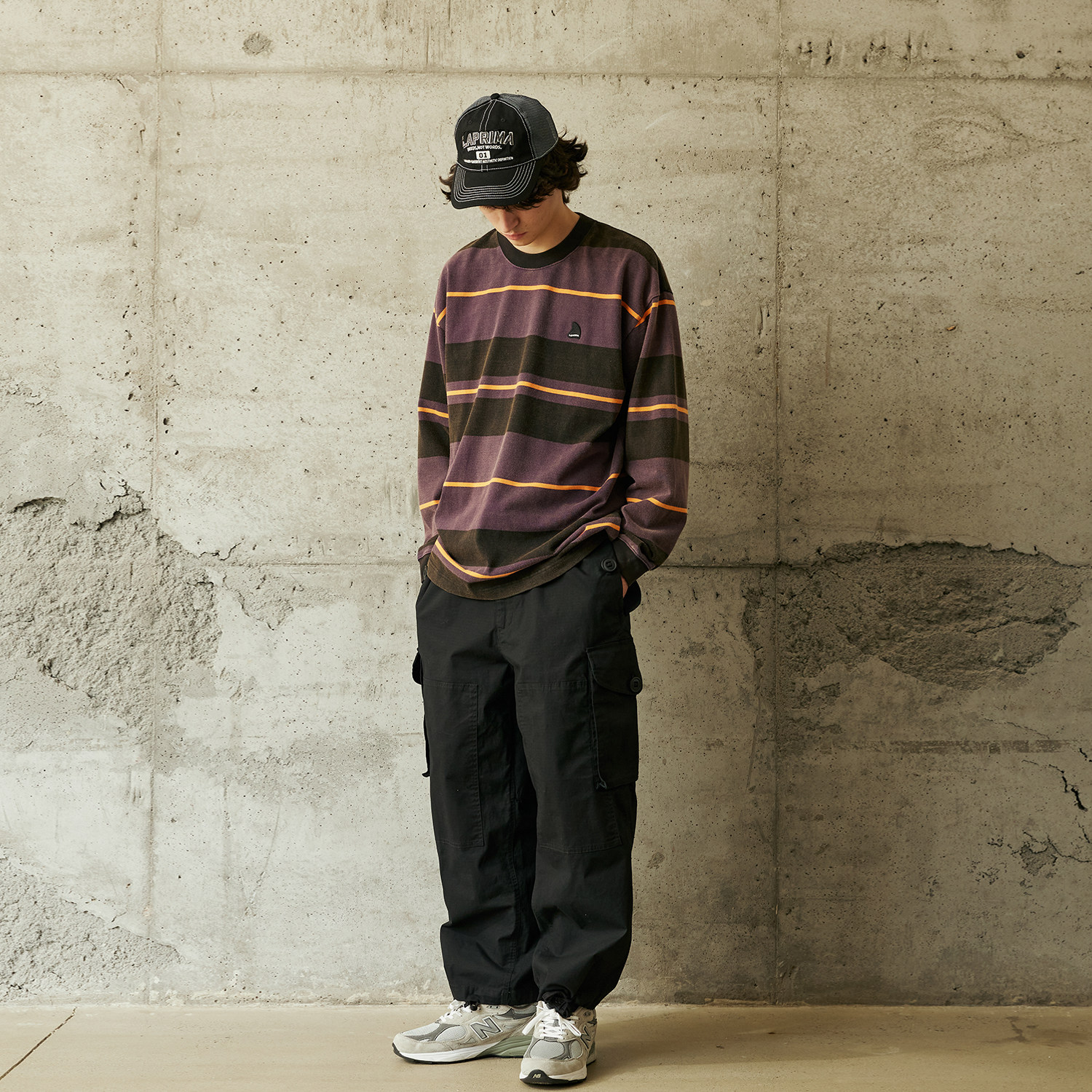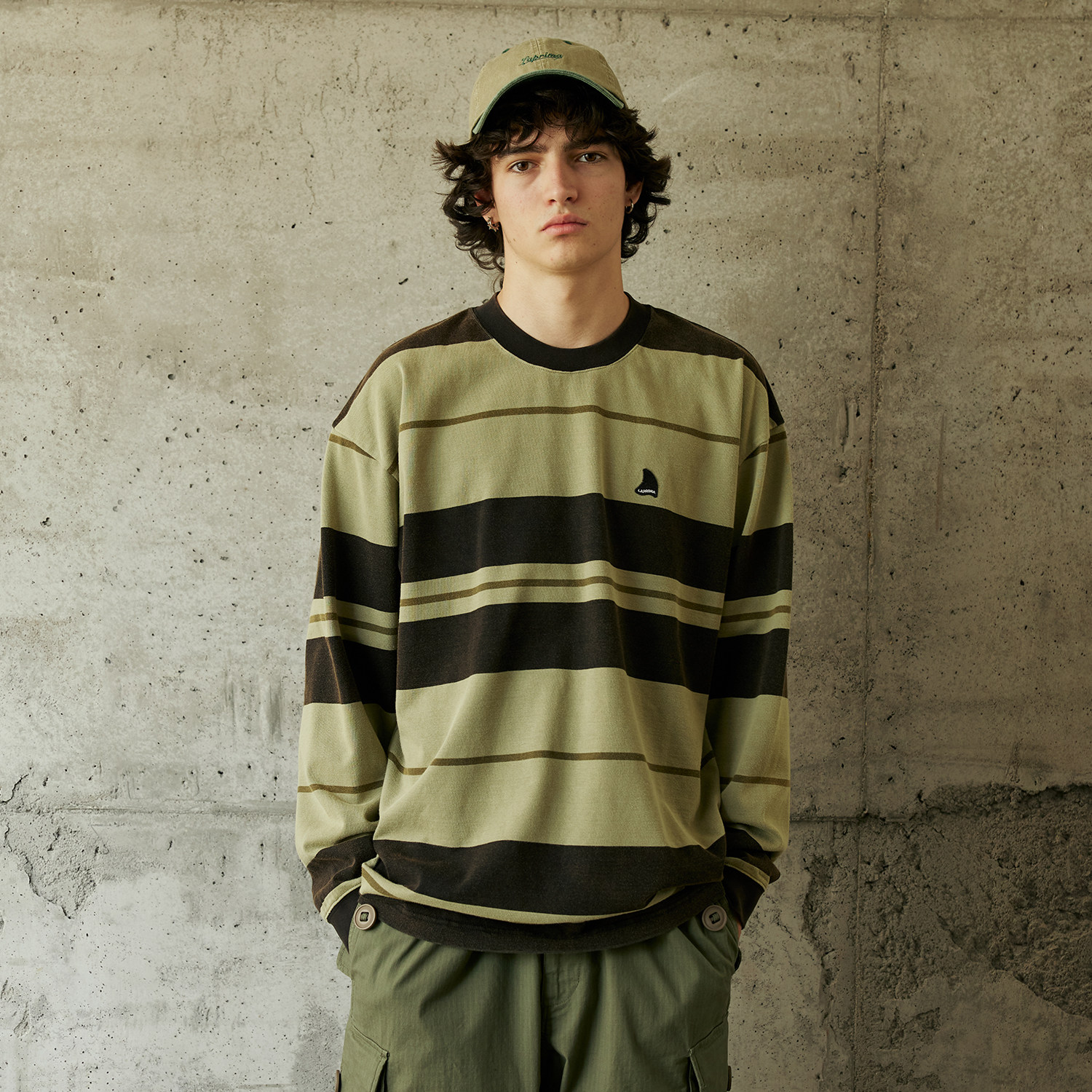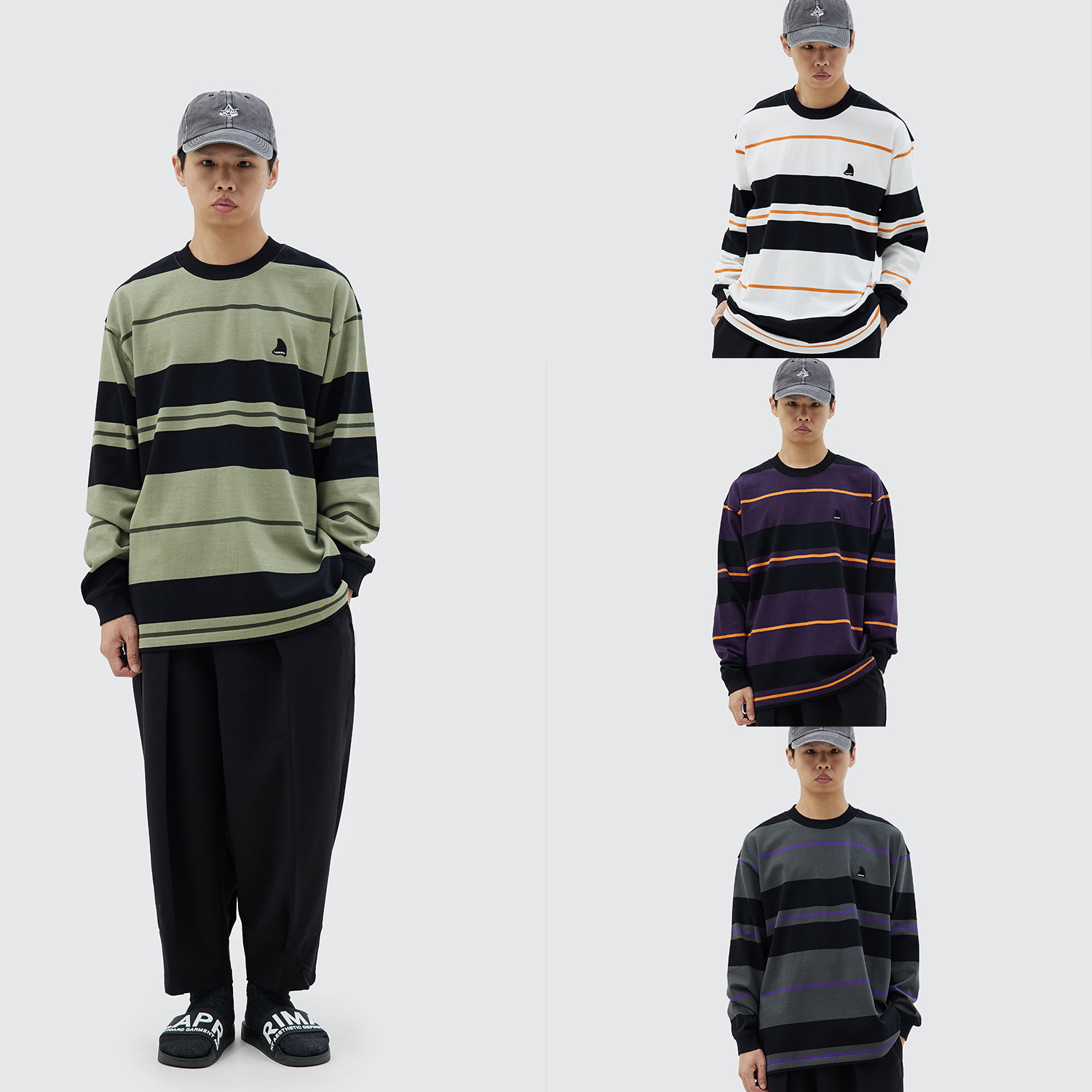 LAPRIMA STRIPE CREW NECK 日系基础条纹长袖宽松纯棉小领口上衣