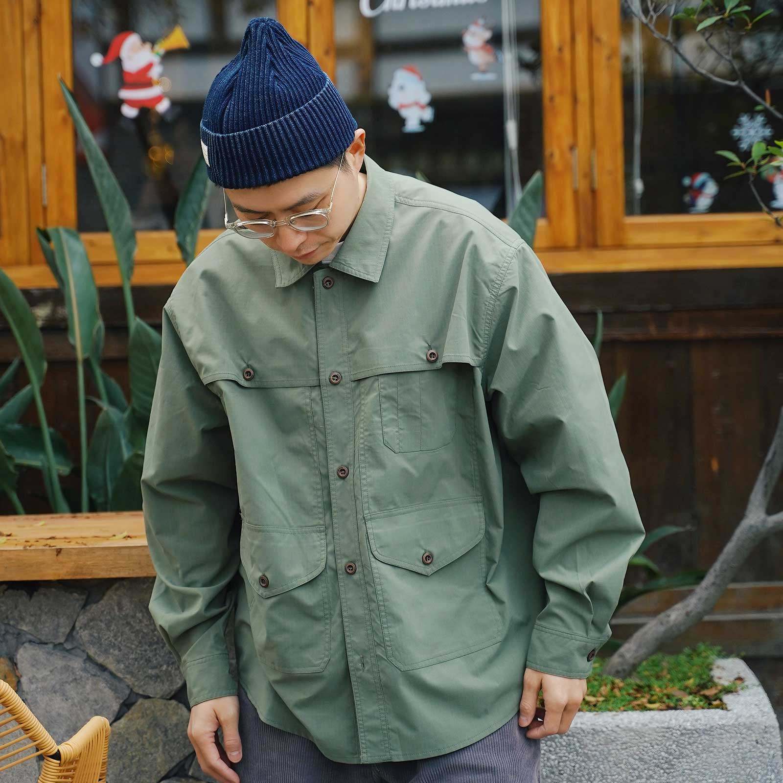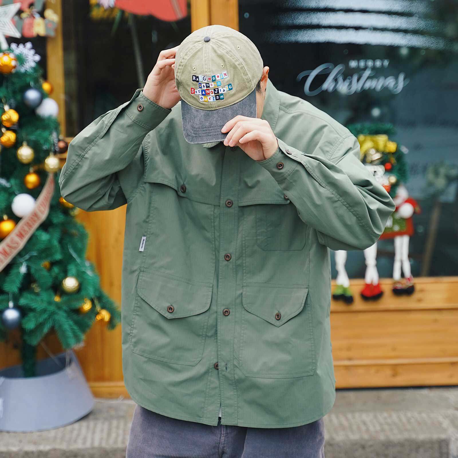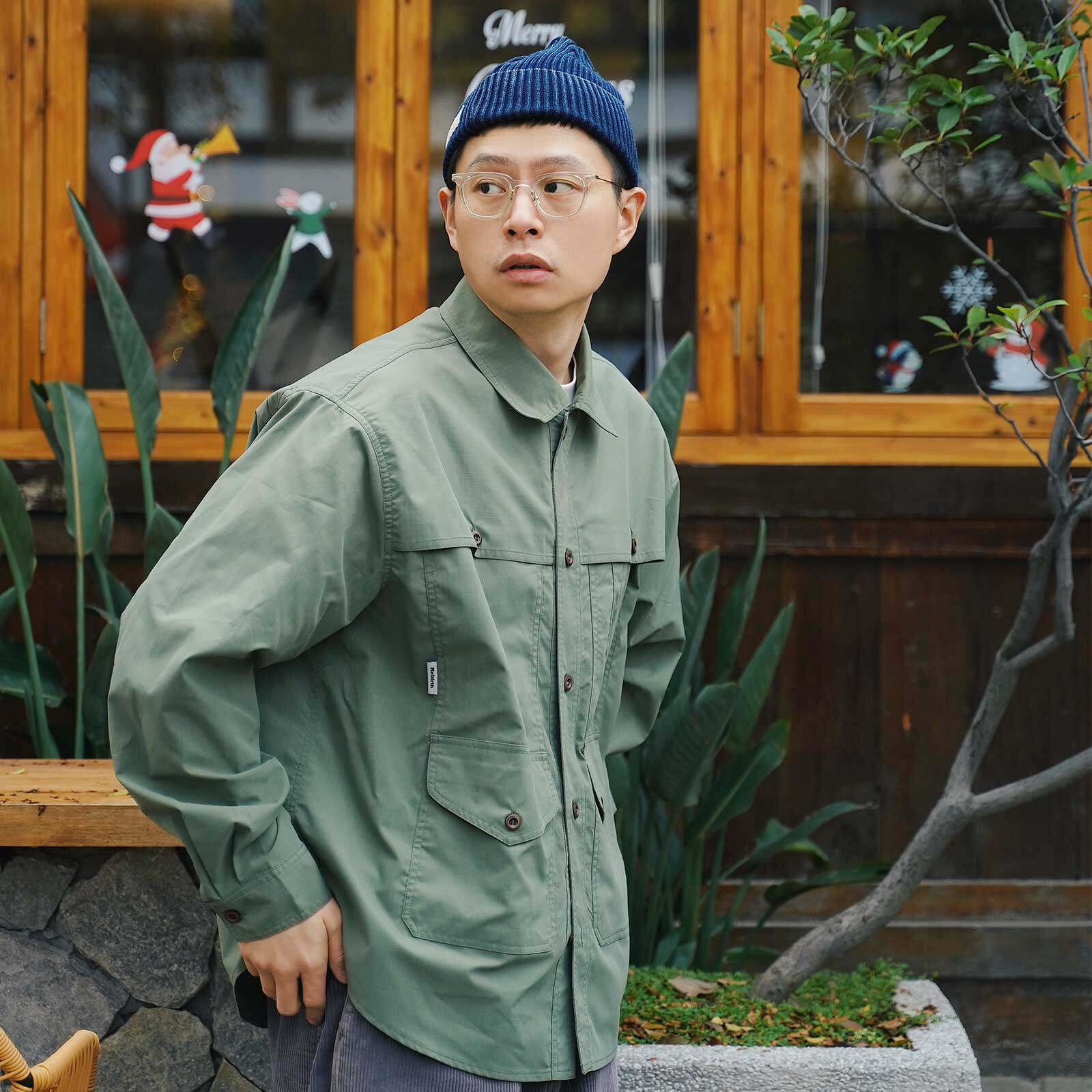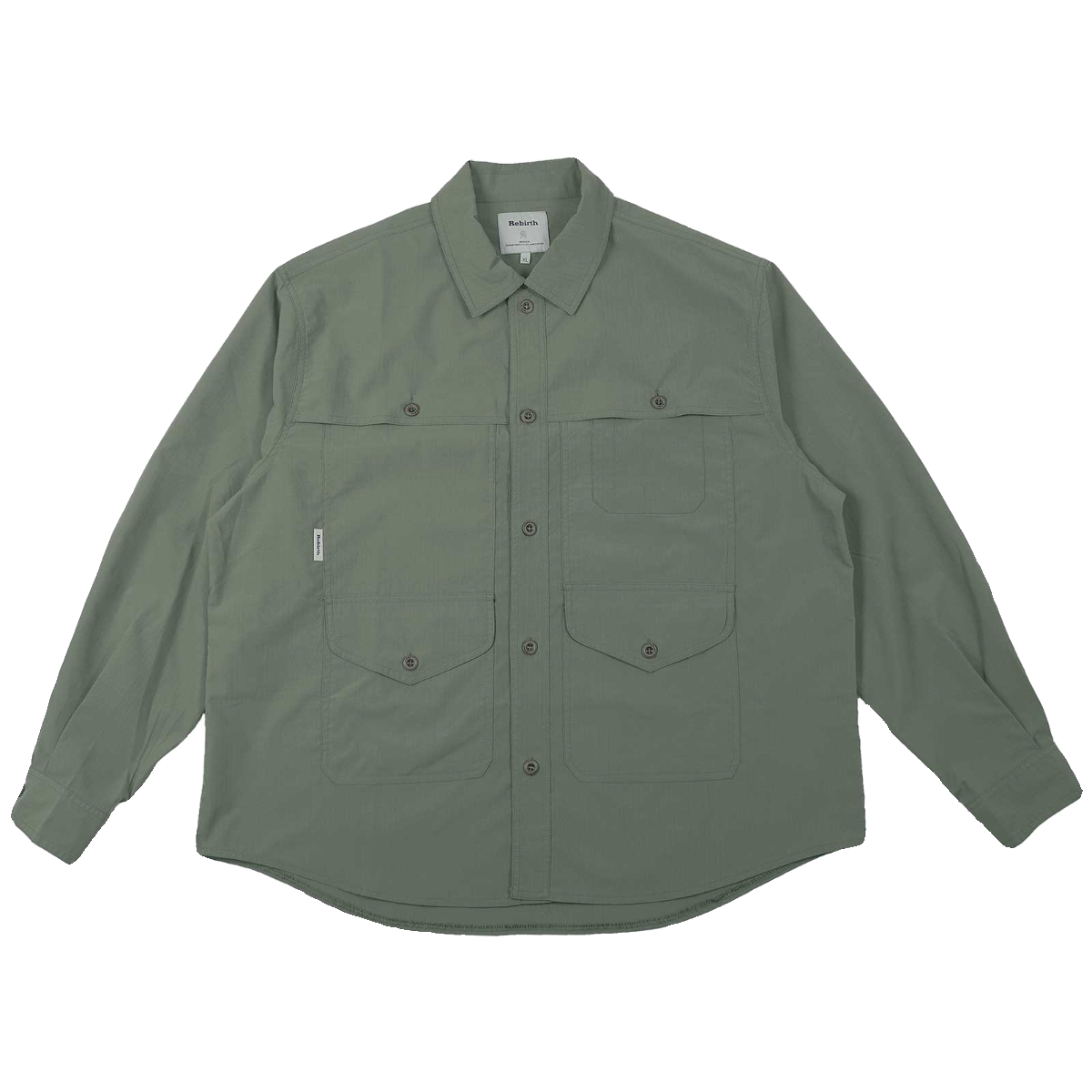 淘宝REBIRTH多口袋长袖工装衬衫上衣宽松大码休闲军绿色春秋款男衬衣
