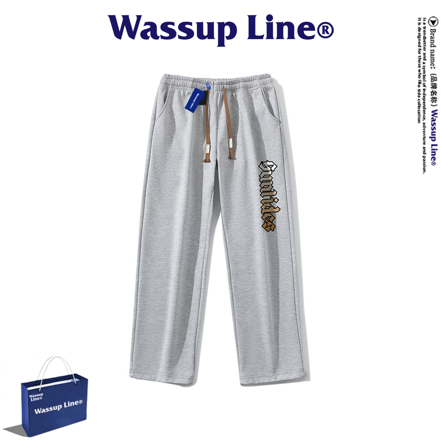 WASSUP Line潮牌运动休闲裤男夏季潮流美式高街印花宽松直筒长裤
