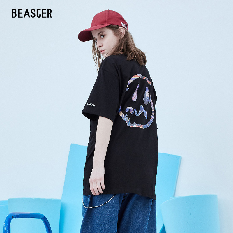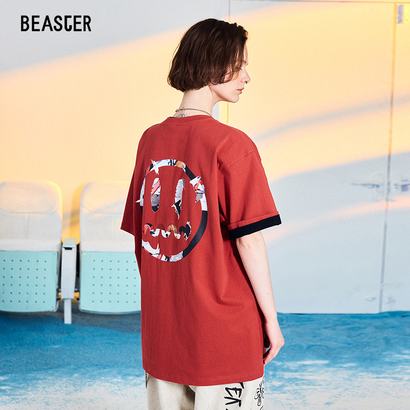 BEASTER小恶魔鬼脸撞色喷绘迷彩宽松嘻哈bfT恤男国潮半袖体恤