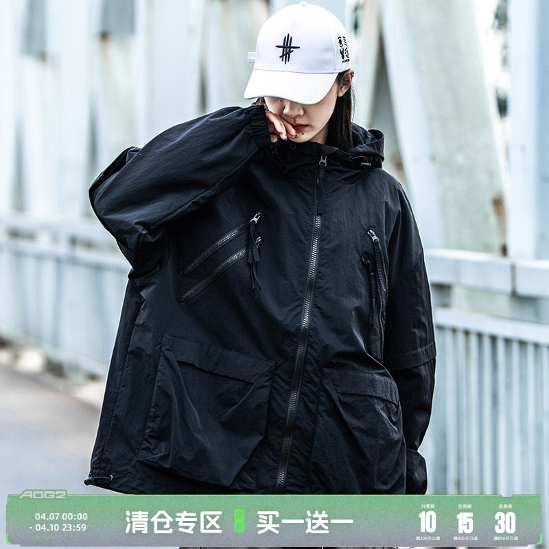 AOGZ工装多口袋连帽机能夹克冲锋衣男女宽松百搭情侣拉链休闲外套